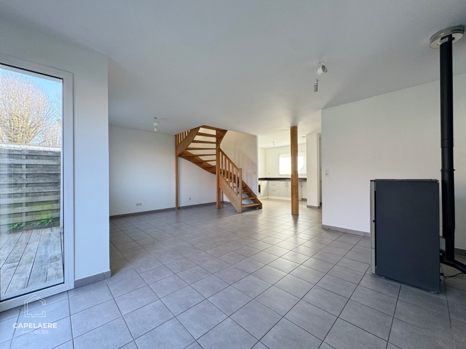 Au rez-de-chaussée, la maison se compose d'un salon/séjour lumineux, d'une cuisine fonctionnelle, une buanderie et un WC.