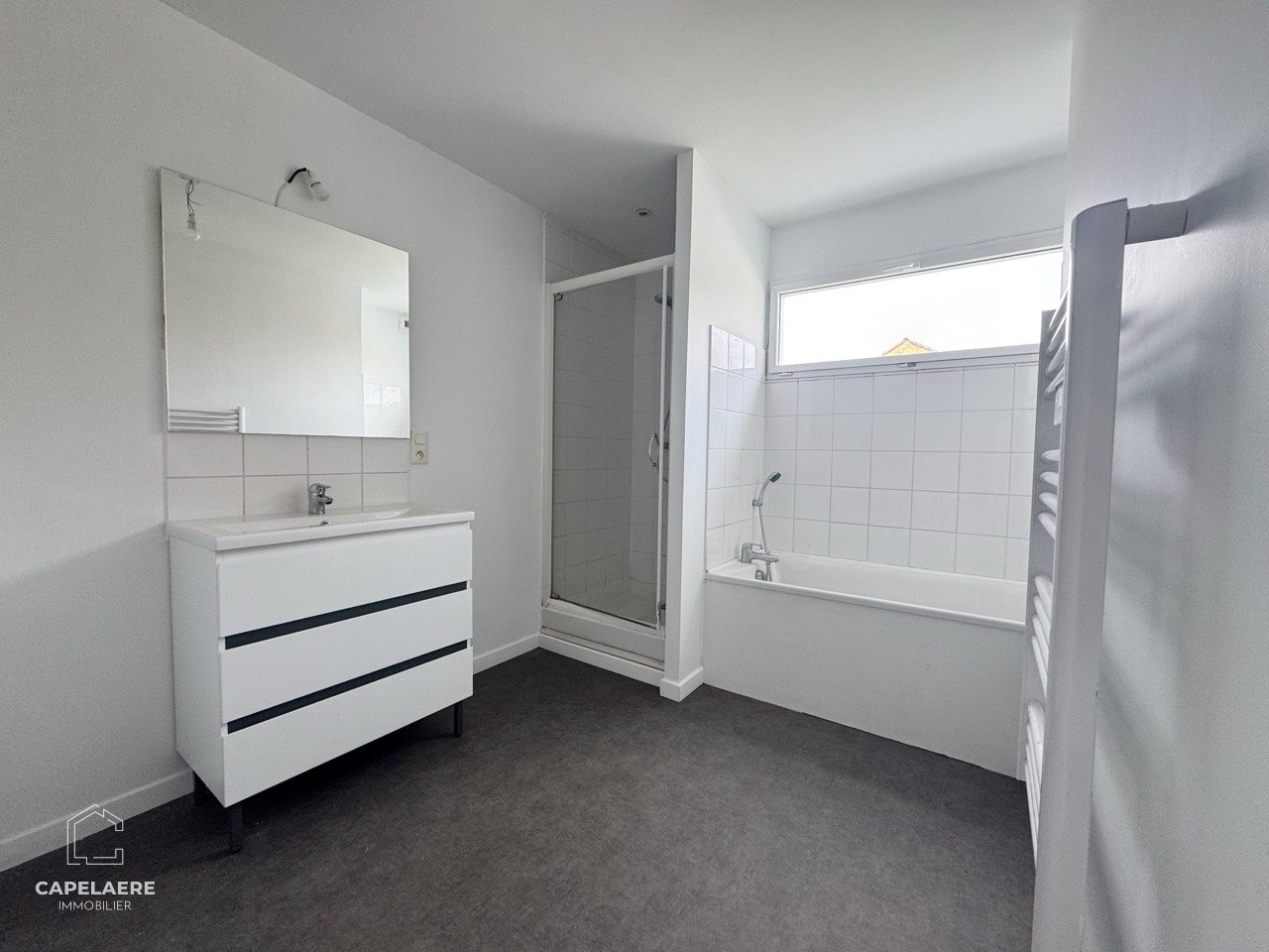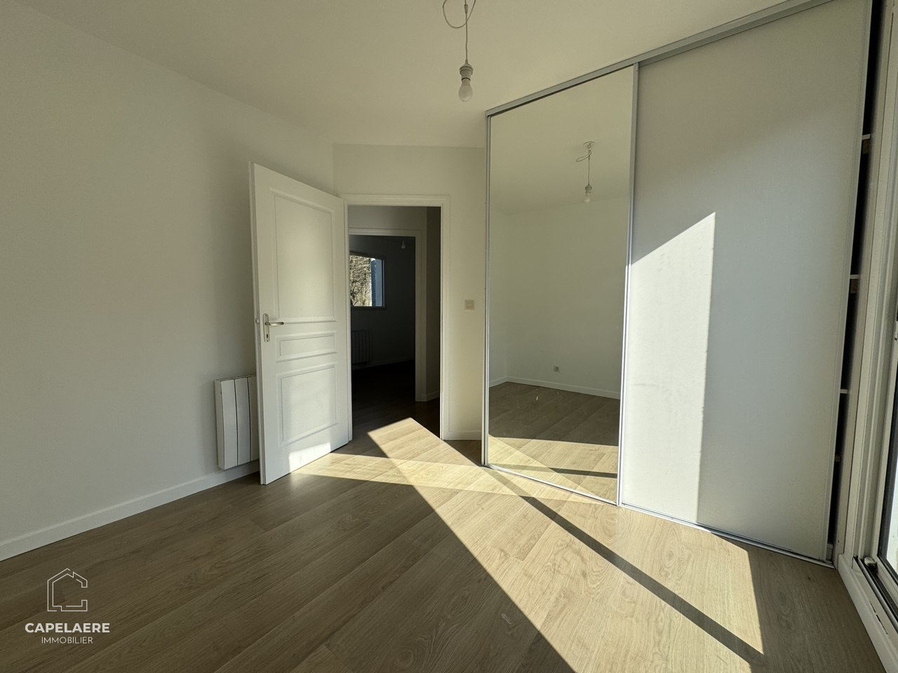 A l'étage, le palier dessert trois chambres (dont une avec terrasse) et une spacieuse salle de bain.