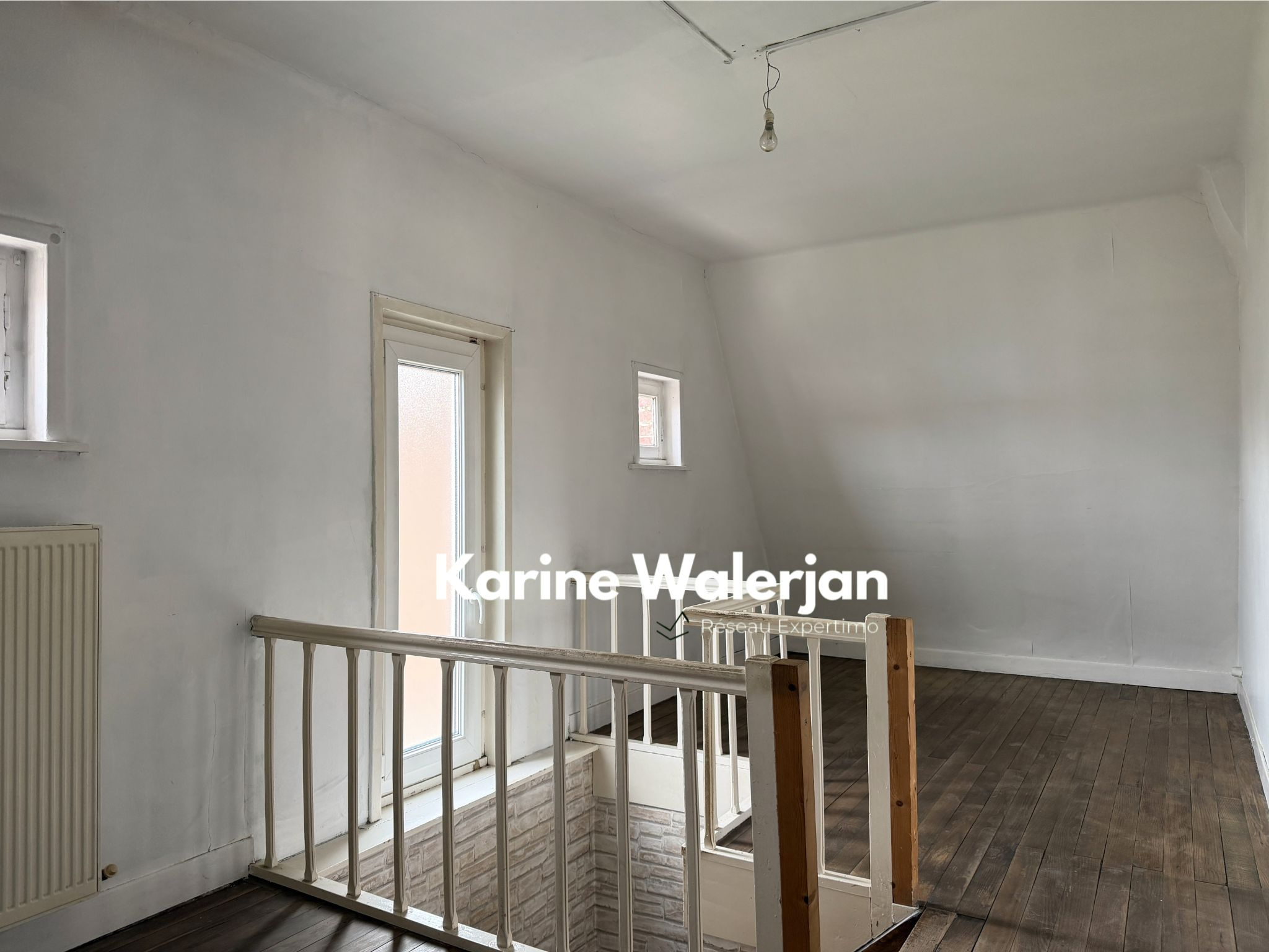 A l'étage, un escalier vous mène à un bel espace de 12 m2 environ pouvant faire office de bureau ou coin détente, une vaste chambre avec de chaque côté, deux espaces sous rampant de 3 m2 environ pouvant être aménagés en dressing.