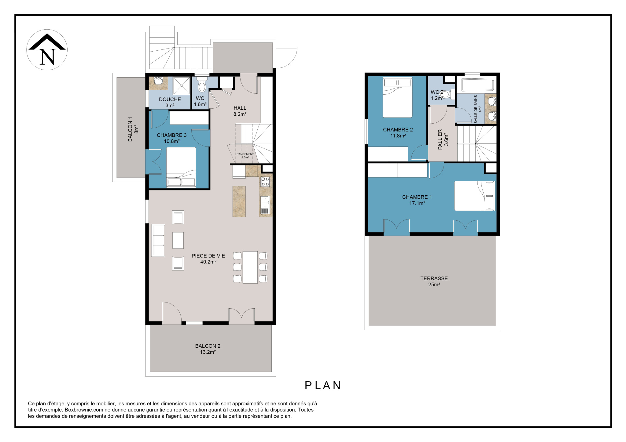 - Trois espaces extérieurs totalisant 48 m² :