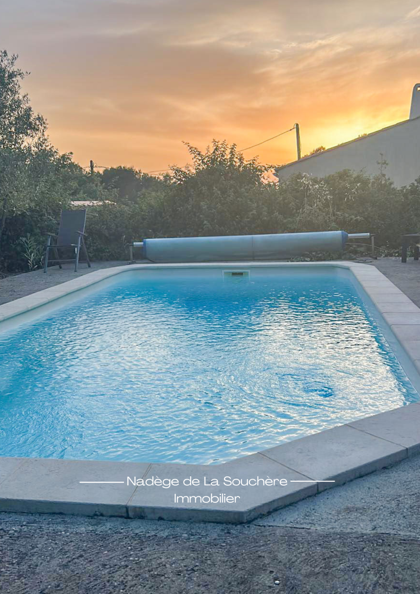 Le jardin, véritable prolongement de la maison, dispose d'une piscine.