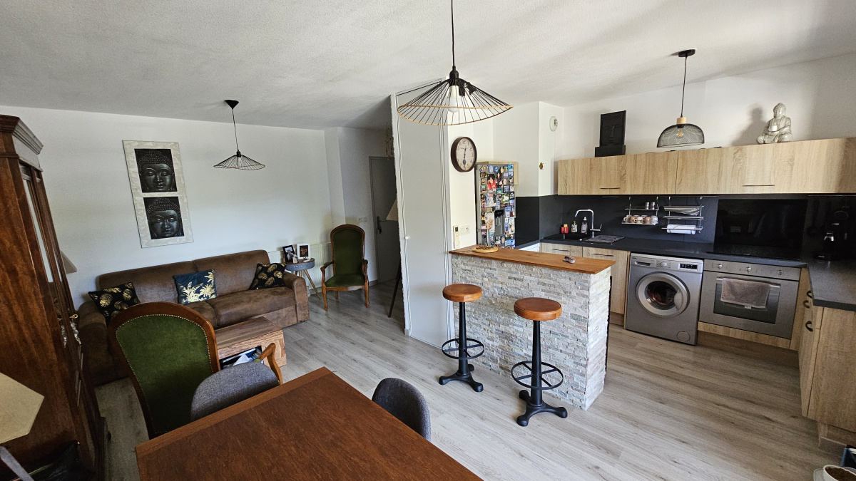 L' atelier de l'immo est ravi de vous présenter ce magnifique T2 de 45m², accompagné d'une superbe terrasse de 7m², niché en haut de RDC d'une résidence privative. Profitez d'une vue magnifique sur le park sans aucun vis à vis. Cet appartement se compose d'un vaste salon séjour avec cuisine américaine tout équipée, donnant accès à la terrasse. Vous y trouverez également une spacieuse chambre avec un grand placard et une salle de bain équipée d'une douche à l'italienne. Une place de parking en sous-sol est incluse. Idéalement situé à proximité du centre ville, des transports et à 5 minutes de l'autoroute sortie sète. Contactez rapidement Philippe au 07 50 41 26 53 pour organiser une visite !!!!!