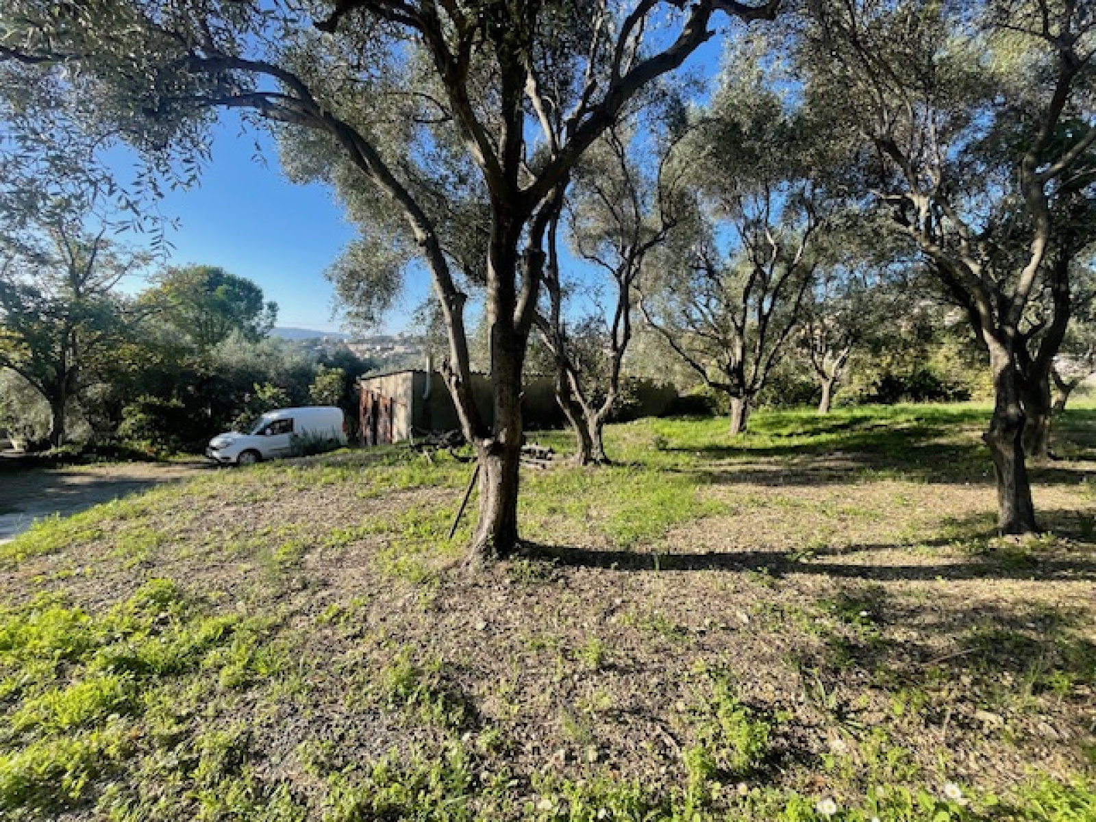 Dans un secteur résidentiel et calme, très joli terrain d'une surface de 1 695 m², complanté d'oliviers et bien exposé. Ce terrain dispose d'un permis de construire pour une surface de 110 m² avec en plus un bâti existant de 60 m².