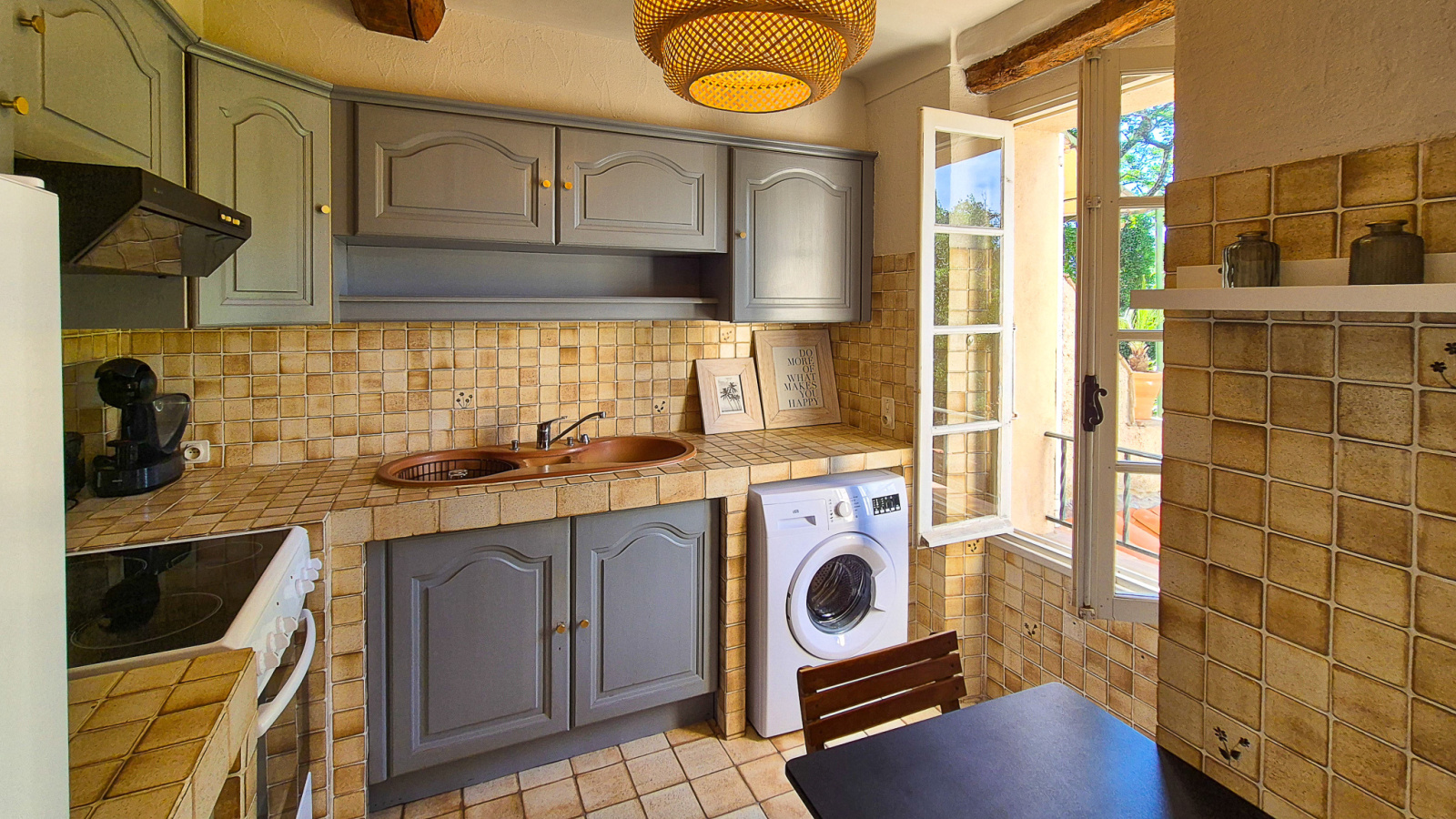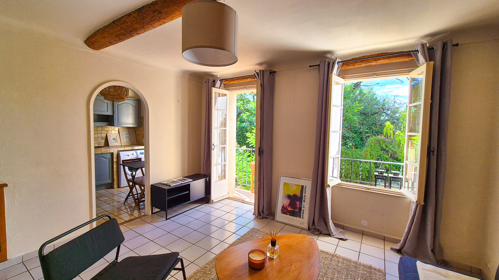 Idéalement situé en plein cœur du village de Grimaud, à pied des commerces et restaurants, ce bel appartement comprend : Une entrée, un séjour, une cuisine, une chambre avec salle de douches-wc.