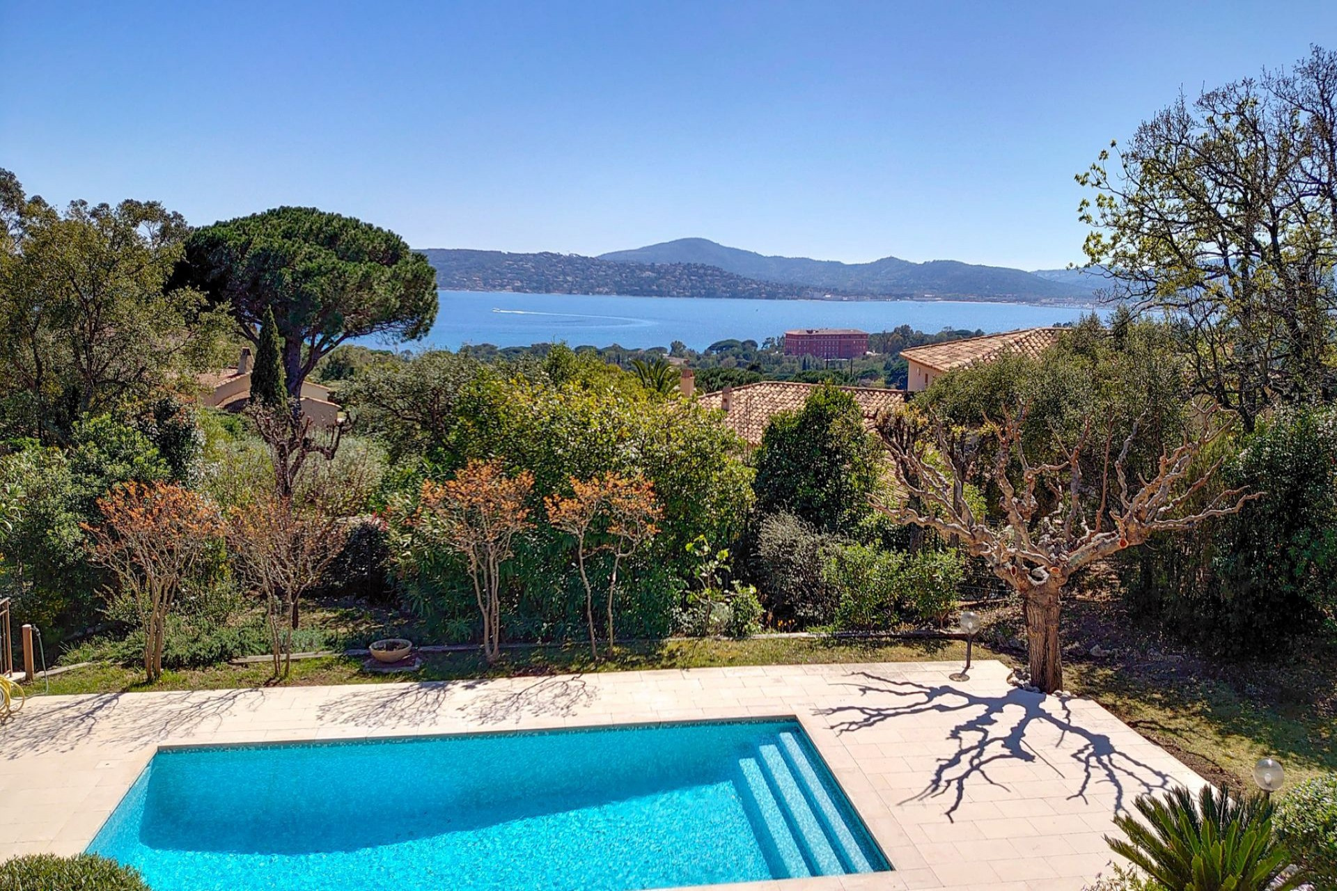 SOUS OFFRE ACCEPTÉE PAR NOTRE AGENCE Golfe de St Tropez EXCLUSIVITE Charmante villa provençale de 6 pièces rénovée et agrandie en 2008 située dans une impasse lui garantissant calme et intimité. Secteur résidentiel à proximité du Golf et des plages de Beauvallon . Belle vue sur la mer. Exposition plein Sud. Terrain clôt de 1600m² environ agrémenté d'une piscine de 4x8m traditionnelle avec de larges plages carrelées. Système de filtration électrolyse au sel. Cabane en bois. Abri en bois pour 1 voiture. Terrain de pétanque ombragé par des chênes-lièges. Situation recherchée - Ensoleillée et belle vue sur mer. Pas agrandissement possible ! Un petit bijou en très bon état d'entretien. Rare sur le marché actuellement. Composition Rez-de-chaussée: Hall de réception avec penderie Toilettes invités Cuisine ouverte équipée Séjour avec cheminée (25m² env)ouvrant par des baies vitrées à galandage sur une belle terrasse couverte Chambre N°1 avec salle d'eau Chambre N°2 avec salle d'eau Chambre N°3 avec salle d'eau Salon avec cheminée (26m² env) Étage : Chambre N°4 avec salle d'eau et wc Rez de Jardin : Garage intégré pour une voiture. Buanderie Petite cave à vins REF V14jp