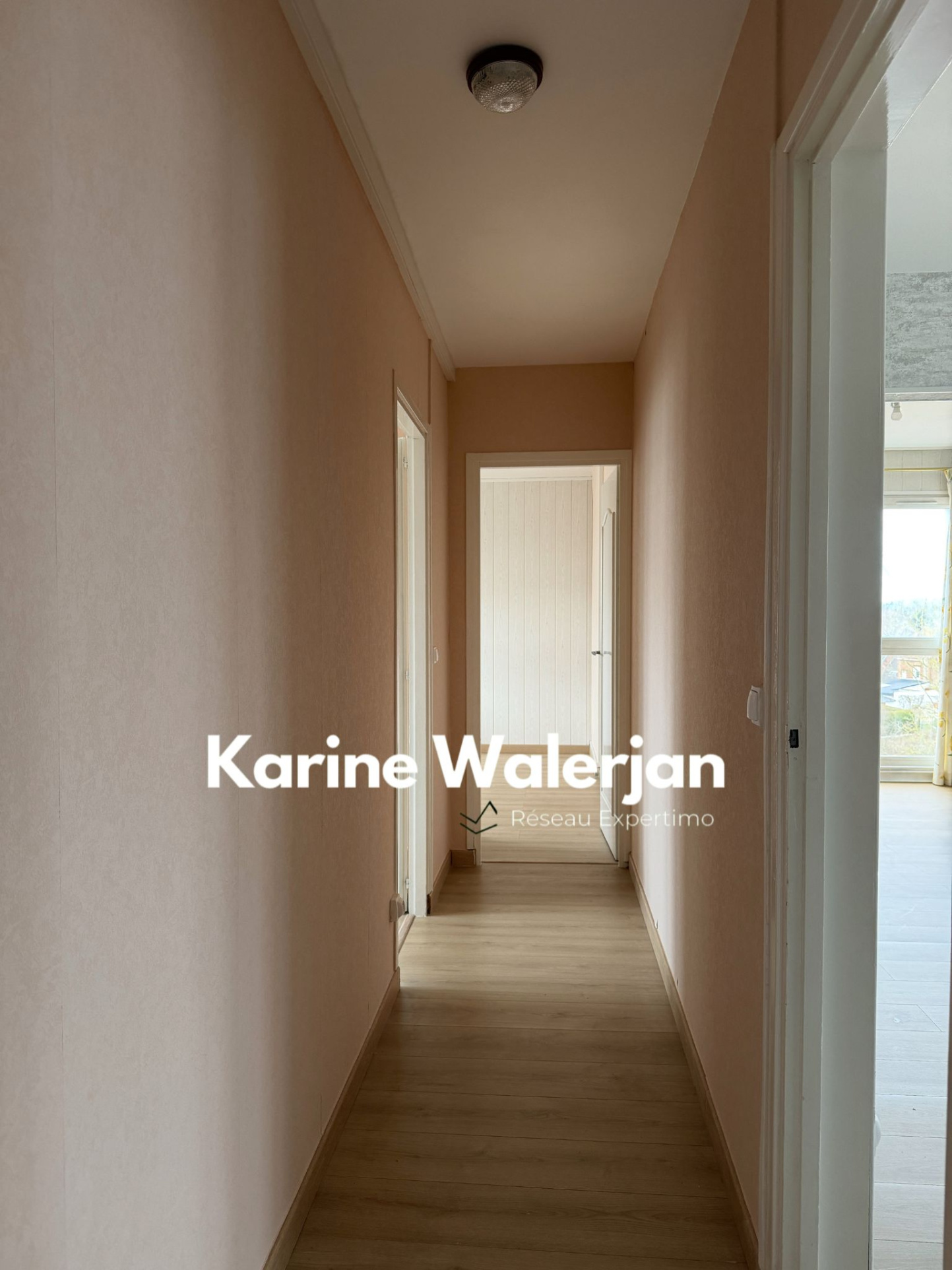 Il vous offre un large hall d'entrée avec vestiaire, un spacieux salon-séjour avec petit balcon, une cuisine équipée neuve, deux chambres avec placard, une salle d'eau récente, un cellier.