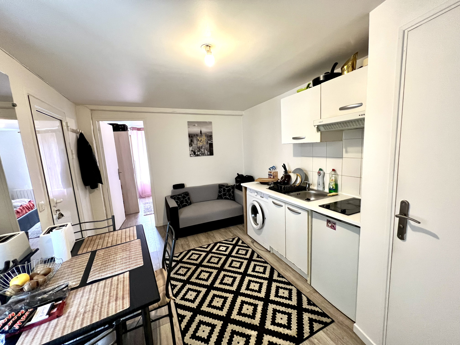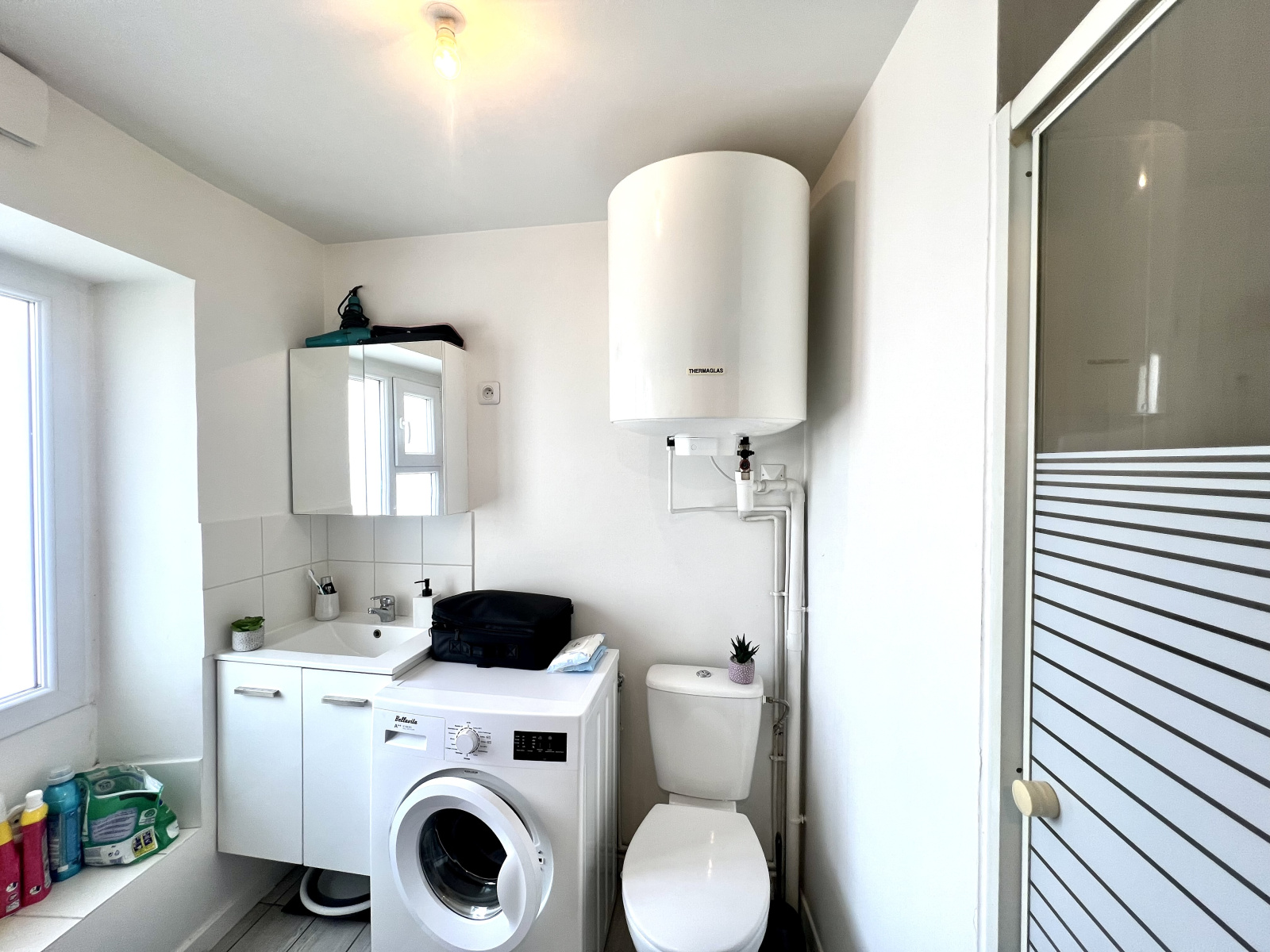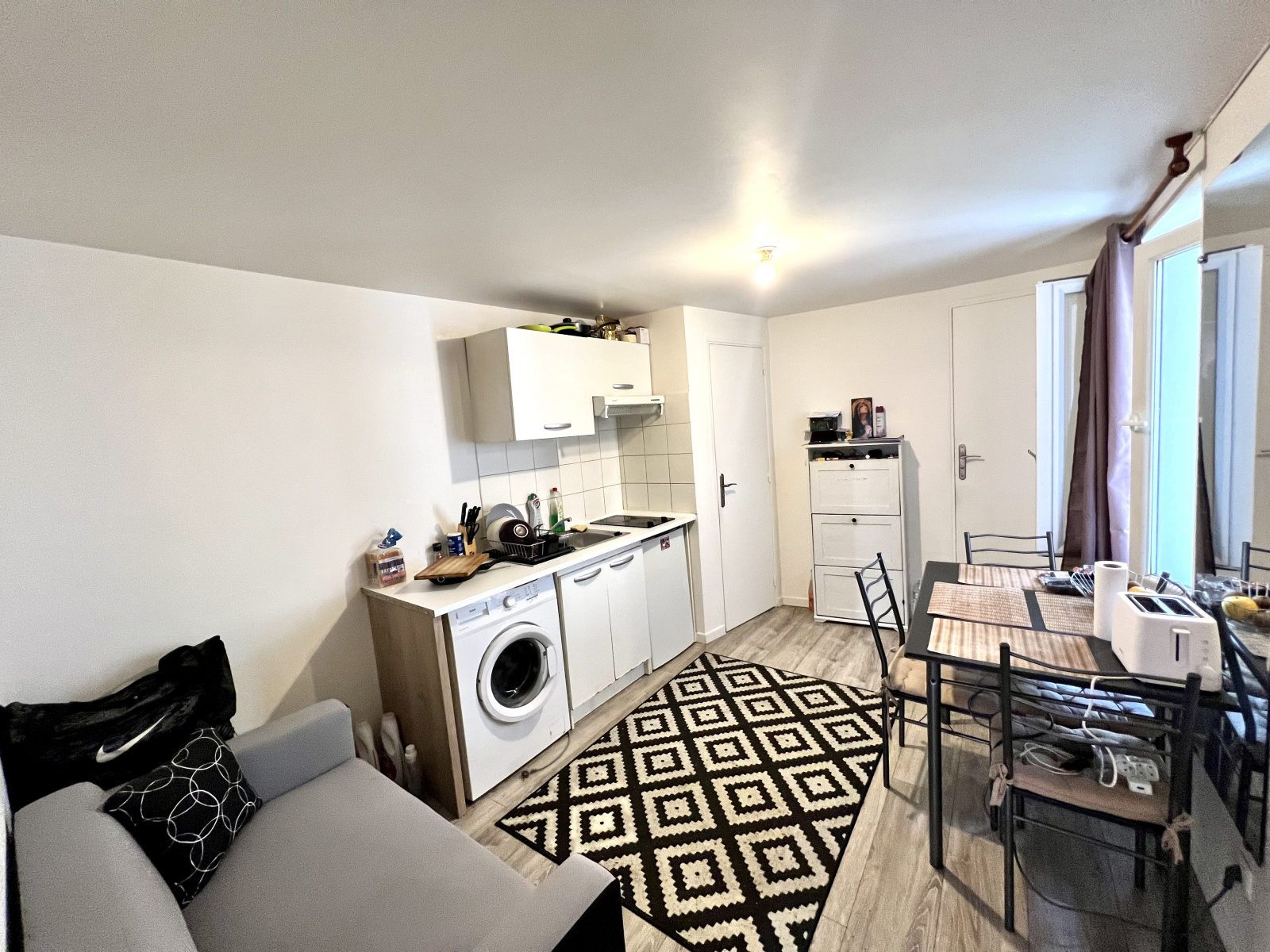 - 1er étage : F2 de 29,7m2 avec entrée, placard de rangement, séjour, cuisine séparée, salle d'eau avec wc et espace lave-linge, 1 chambre
