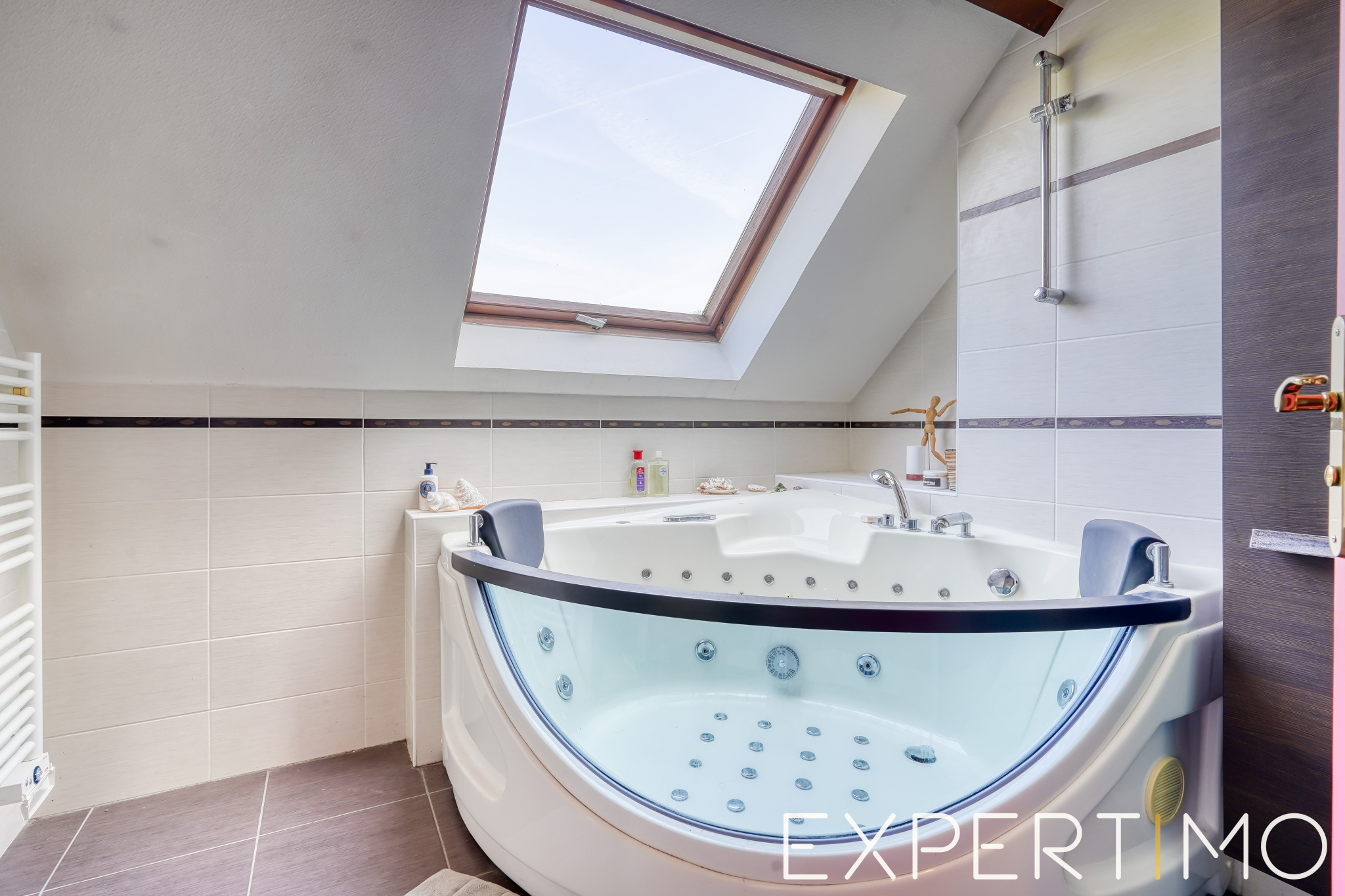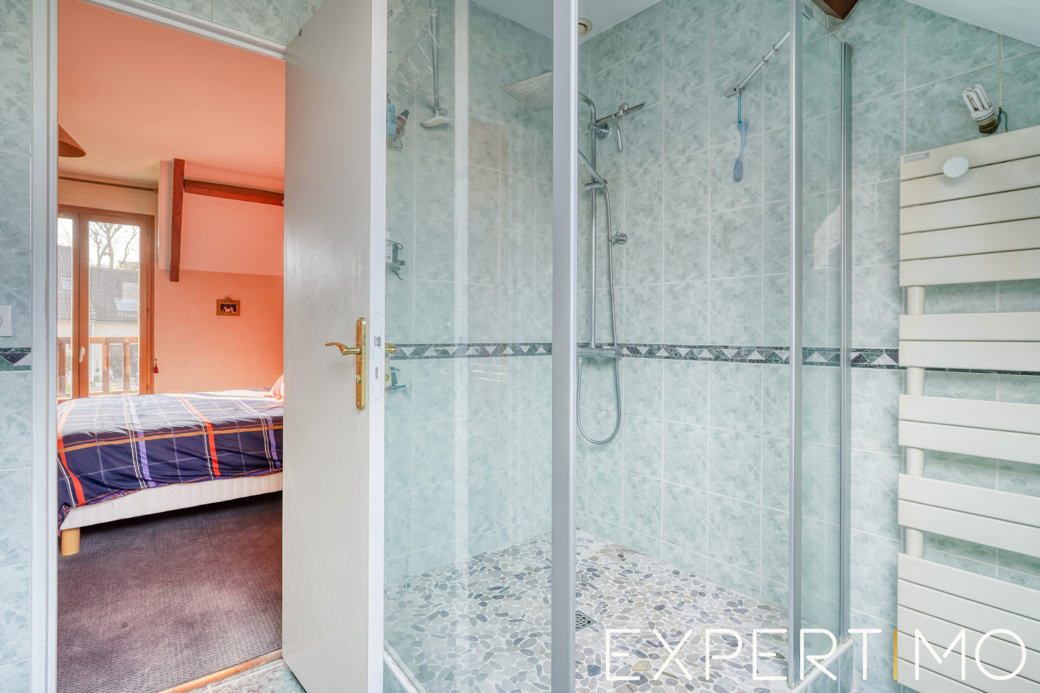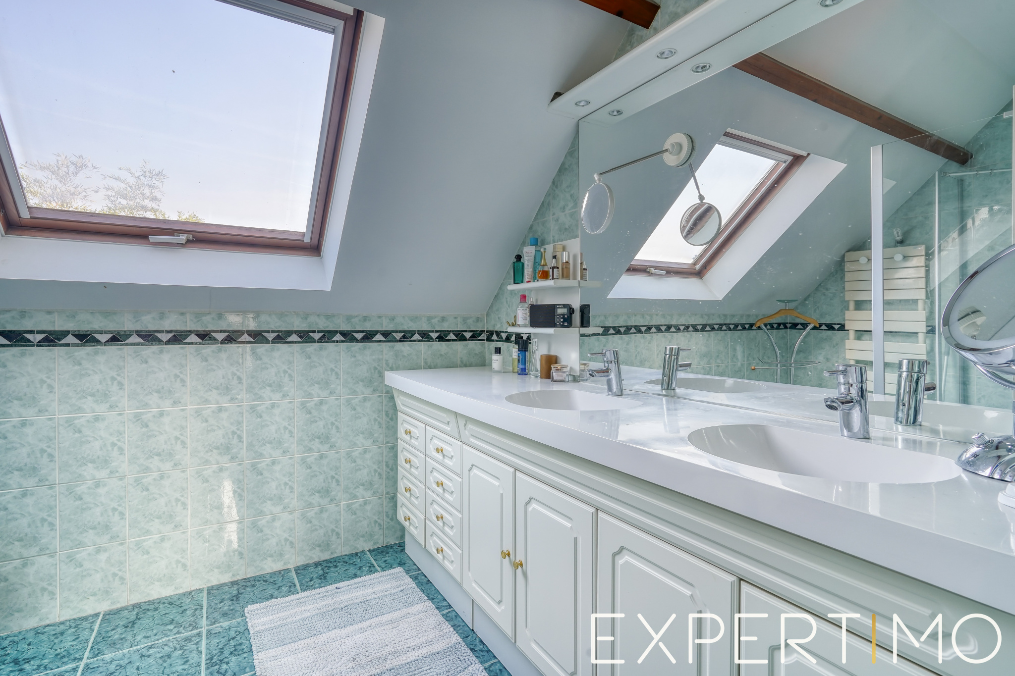 A l’étage, quatre belles chambres dont une suite parentale avec une douche spacieuse et double vasque, nombreux placards de rangement, salle de bain indépendante et toilettes séparés.