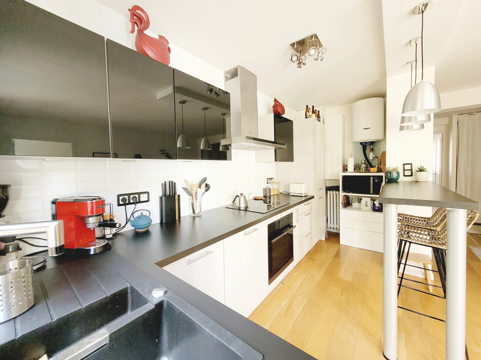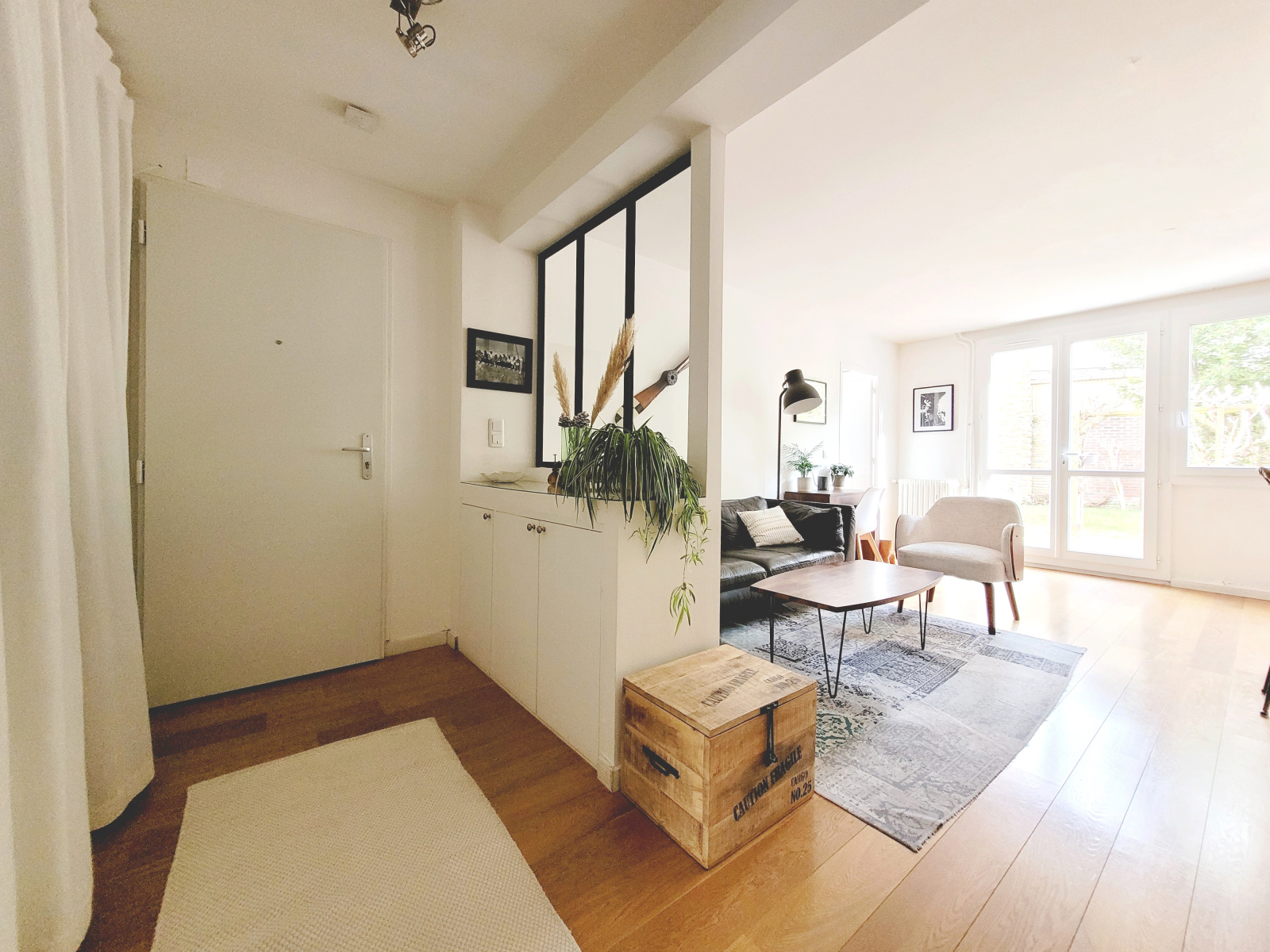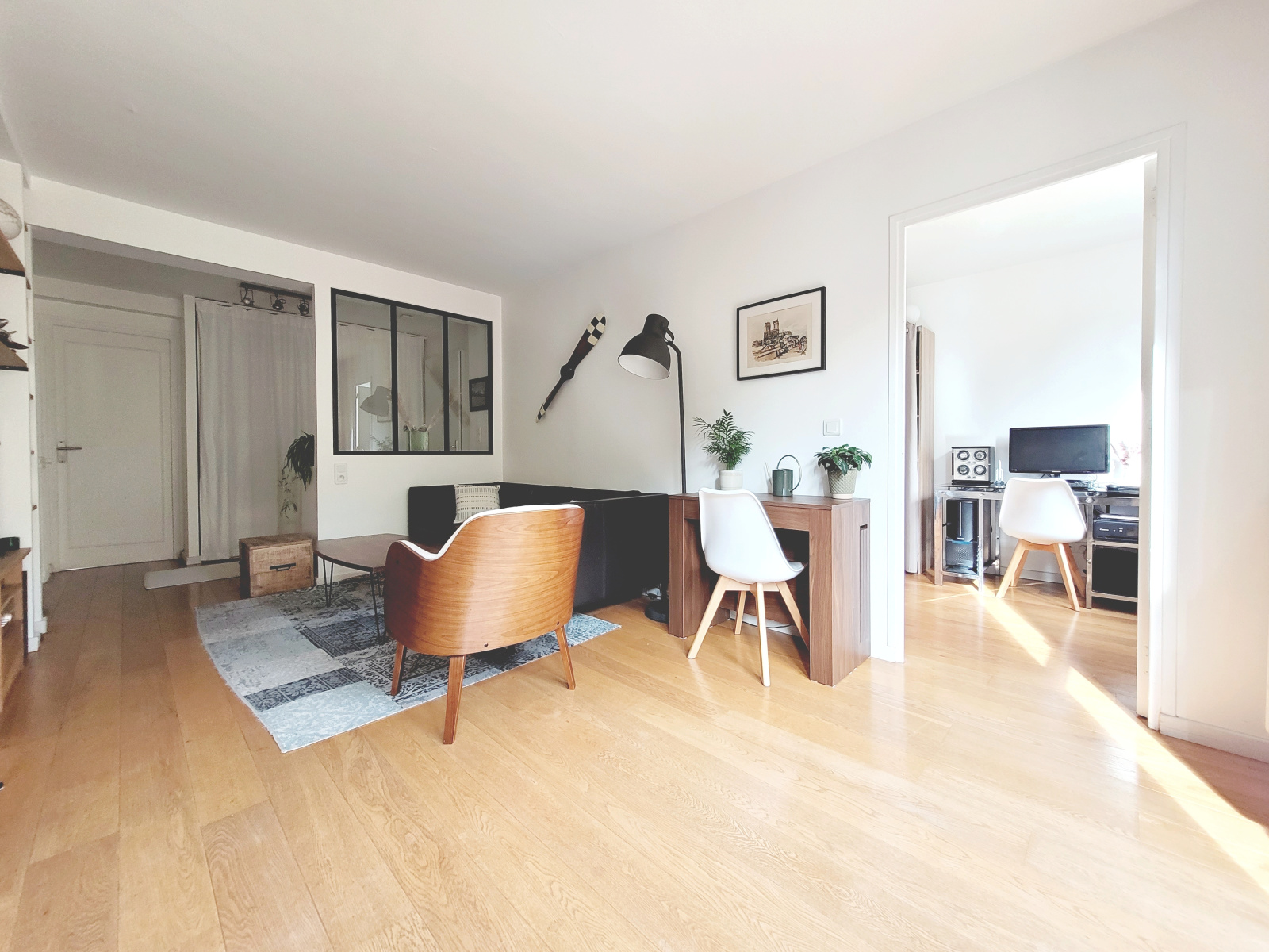 Expertimo - Marie-Eve Coulomb vous présente : proche de l'île Saint Germain, ce bel appartement, entièrement rénové avec goût, et son charmant jardin arboré de 75m2 sont un vértiable havre de paix. Très bien agencé et entièrement parqueté, il se compose d'une entrée avec un double placard penderie, d'un beau séjour - avec cuisine ouverte entièrement équipée et aménagée - qui donne sur le jardin ainsi que d'une chambre ou bureau, d'une seconde chambre avec placard penderie intégré, d'une salle d'eau en parfait état et de toilettes séparés. Vous pourrez déjeuner au soleil ou vous détendre dans le salon extérieur aménagé à l'abri des regards, devant un mur de vigne vierge. Un box de parking et une grande cave saine de 7m2 complètent ce bien. Charges de copropriété incluant le chauffage : 242,66 euros / mois. Balon électrique neuf pour l'eau chaude. Taxe foncière : 734 euros.