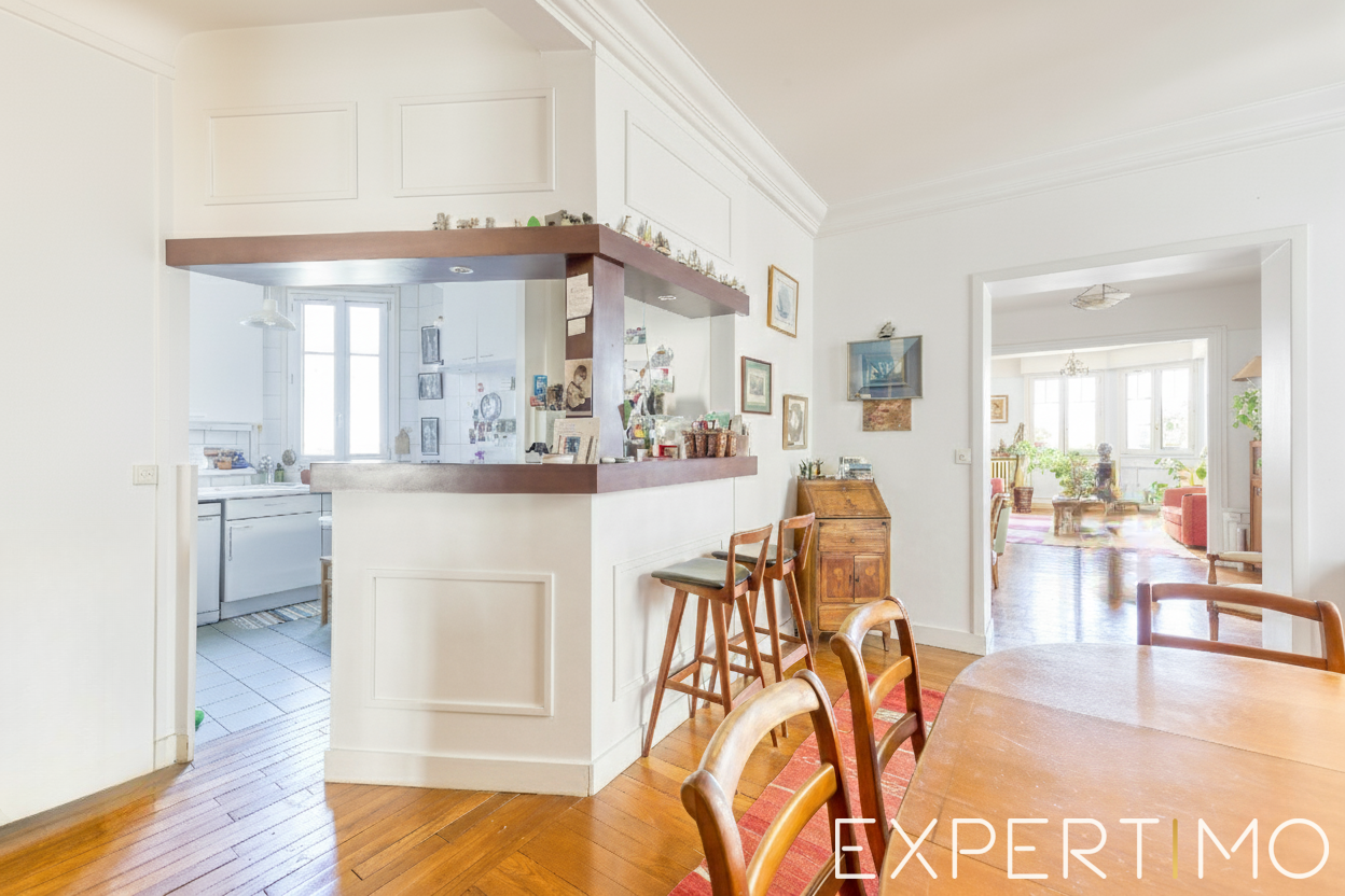 Marie-Eve Coulomb vous présente : au 2ème étage d'une copropriété bien entretenue de style Art Déco, ce très bel appartement familial calme et lumineux avec 4 chambres (possibilité de créer une 5ème chambre) et un bureau de 8,3m2 fera le bonheur d'une grande famille. Il se compose d'une entrée, d'un grand double séjour salle à manger avec cuisine ouverte entièrement aménagée et équipée, de quatre très grandes chambres (16,47m2, 16,17m2, 16,18 et 11,63m2), d'une salle de bain et d'une salle de douche, ainsi que 2 toilettes séparés. Rafraîchissement à prévoir. Deux caves saines et un parking complètent ce bien. Double vitrage, deux ballons d'eau chaude électriques. Charges de copropriété incluant le chauffage : 623 euros / mois. Une cave et une place de parking complètent ce bien. Transport : métro ligne 12 (Mairie d'Issy) à 12 minutes, gare de Clamart (ligne N pour Paris-Montparnasse) à 3 minutes à pied (ouverture de la ligne 15 en 2025). La présente annonce immobilière vise 1 lot principal situé dans une copropriété de 20 lots ne faisant l'objet d'aucune procédure en cours. Honoraires d'agence à la charge du vendeur. Information d'affichage énergétique sur ce bien : classe ENERGIE D et classe CLIMAT D avec l'installation d'une chaudière gaz à condensation. La présente annonce immobilière a été rédigée sous la responsabilité éditoriale de Mme Marie-Eve COULOMB, mandataire indépendante en immobilier, agent commercial immatriculé au RSAC sous le numéro 883507998.