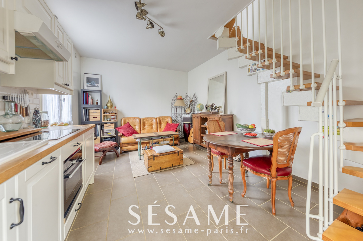 Quartier des Ursines. Triplex coup de cœur avec terrasse de 12m2 orientée sud. A 10 min à pied de la gare de Chaville Vélizy (RER C), cette maison entièrement rénovée, avec tout le confort, et sa jolie terrasse ensoleillée (orientée sud-ouest) est située dans un quartier pavillonnaire, à proximité immédiate de Chaville, de la forêt domaniale de Meudon et de l'étang de l'Ursine. La maison se compose d'un séjour avec cuisine ouverte entièrement équipée, d’un espace bureau ou chambre d'enfant avec porte à galandage, d’un dressing, d’une chambre sous les toits et d’une salle d’eau refaite à neuf avec toilettes. Aucun travaux à prévoir, la terrasse a été refaite en 2021, ainsi que la toiture (avec isolation) en 2022. Chauffage et eau chaude électriques. Charges courantes tout compris (dont électricité et chauffage) : 116€ / mois. Une grande cave complète ce bien. Taxe foncière : 376 euros. Parking gratuit dans la rue et possibilité de garer un 2 roues dans l'allée de la maison. Transport : RER C (gare de Chaville Vélizy), bus à 50 mètres qui relie en 5 minutes Chaville Rive Gauche (train N pour Montparnasse) et en 10 minutes Chaville Rive Droite (train L pour La Défense et St Lazare ). La présente annonce immobilière a été rédigée sous la responsabilité éditoriale de Mme Marie-Eve COULOMB, mandataire indépendante en immobilier, immatriculée au registre du commerce sous le numéro 883507998.