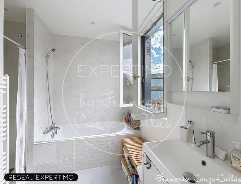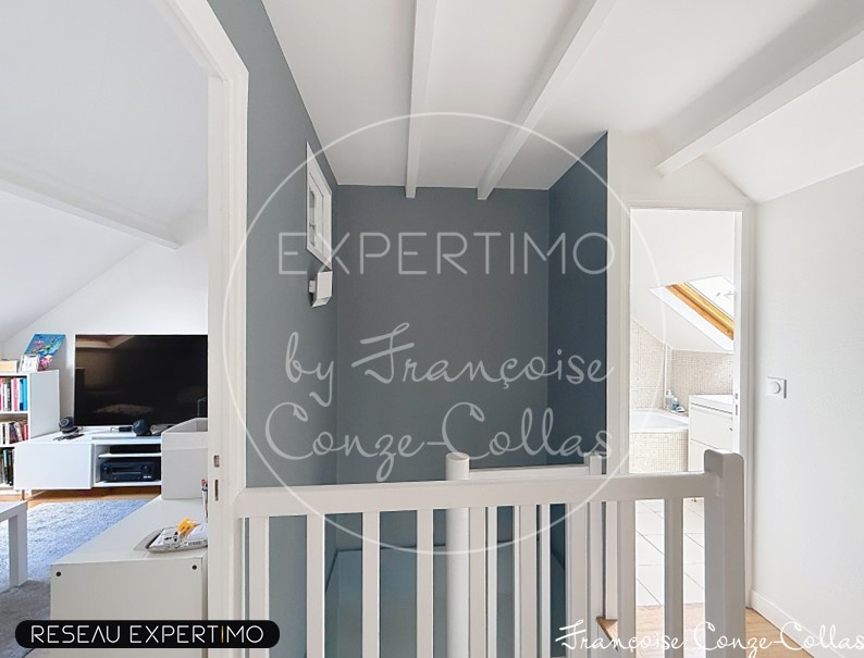 Au 1er étage, vous trouverez 3 belles chambres de 9, 12 et 14m2, un WC indépendant avec fenêtre et une salle de bains avec fenêtre également, double vasque, baignoire et douche.