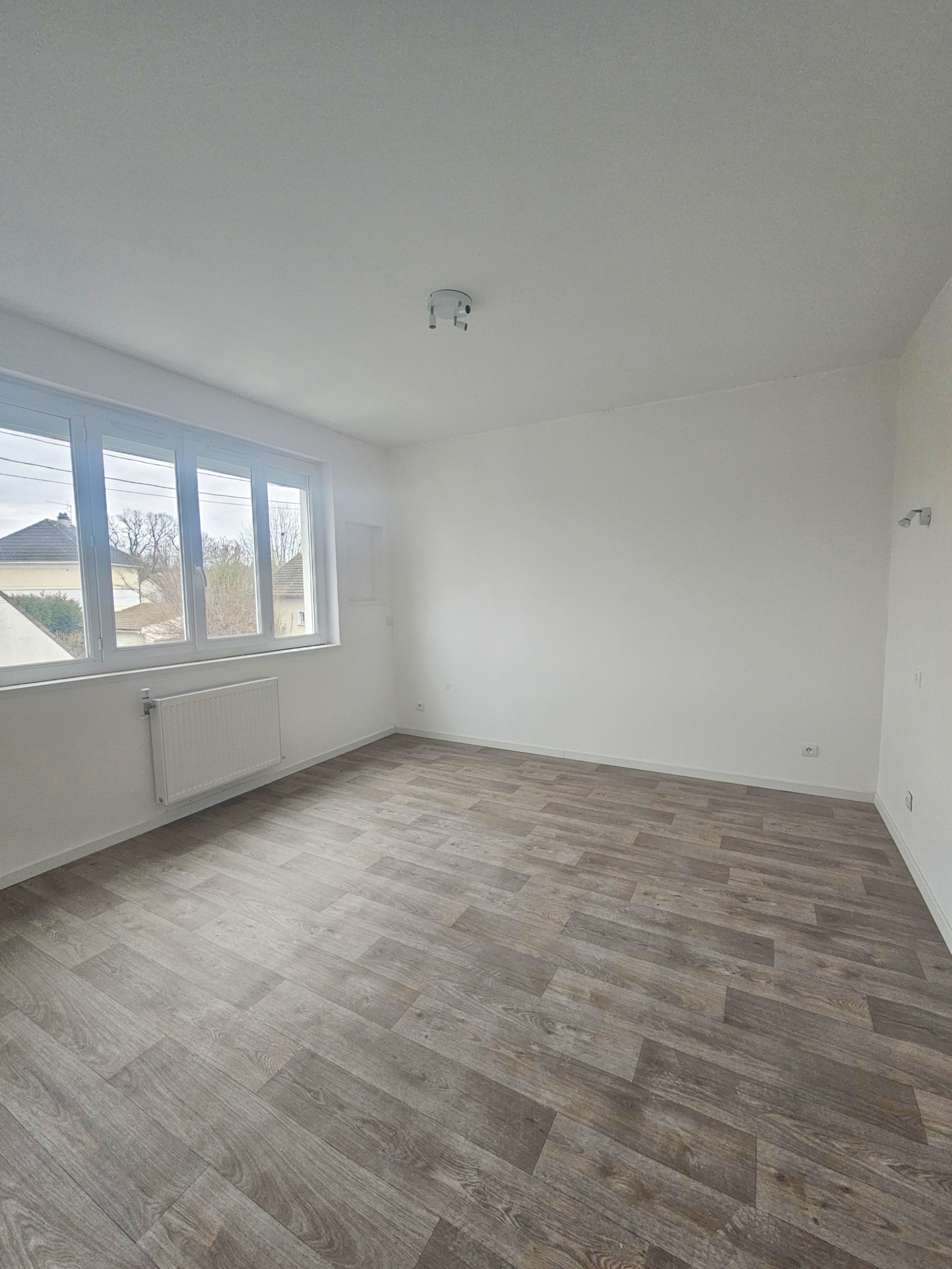 Il se compose de deux chambres spacieuses de 15 et 16 m2, d'un salon , d'une cuisine à installer , d'une salle d'eau avec wc et deux espaces de rangement dans le couloir.