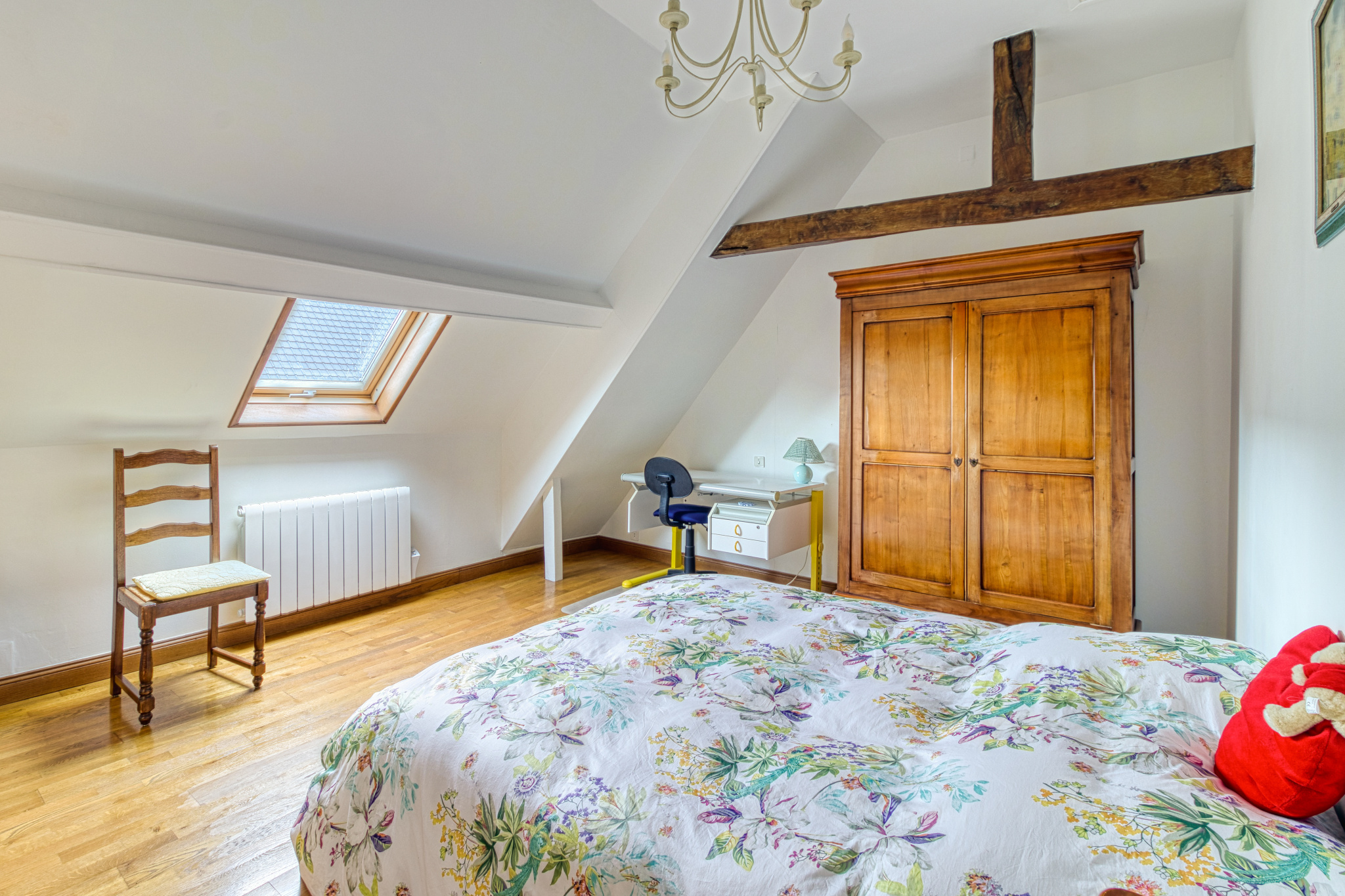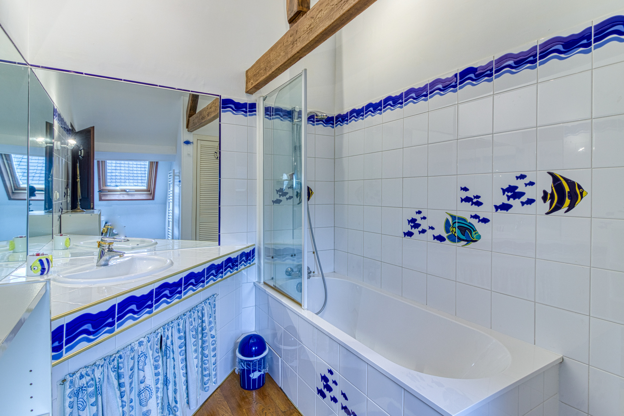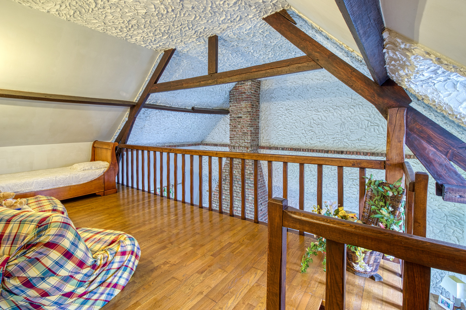 A l'étage une mezzanine pouvant faire office de salle de jeux, deux chambres aux styles flamands dont une suite parentale.