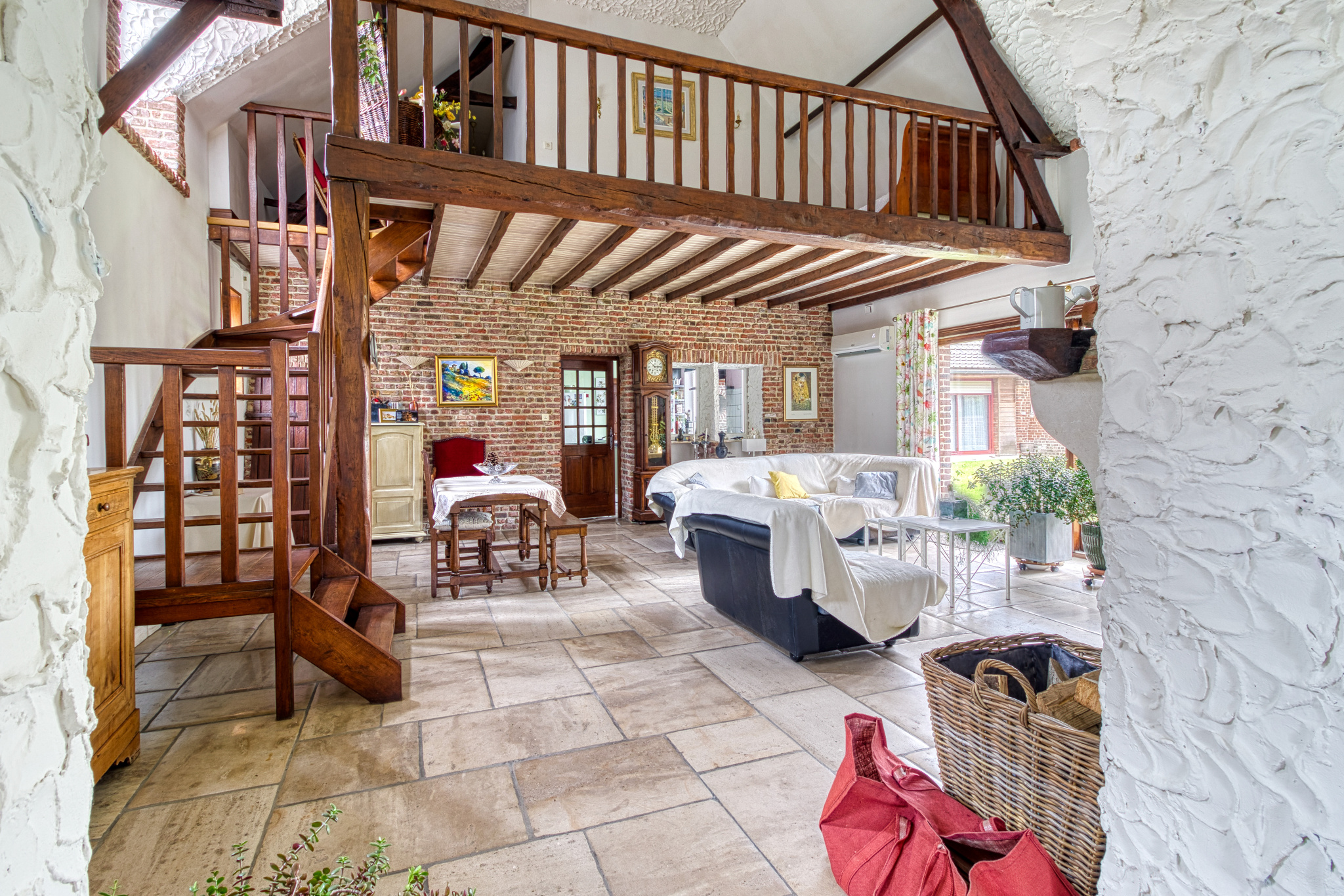 Hinges, à 3 km de Béthune dans un village prisé, je vous propose une ferme au carrée de 1920 entièrement restaurée avec goût dans l'esprit d'origine de 200 m2.