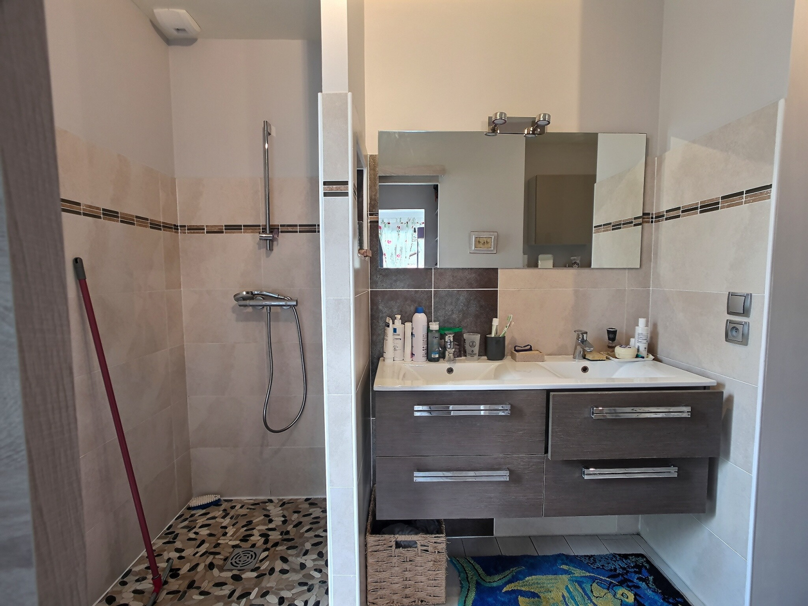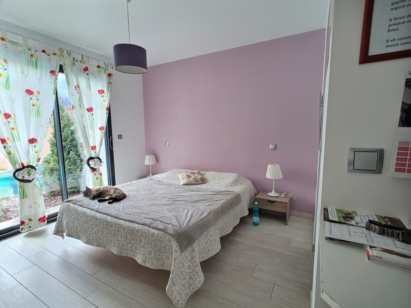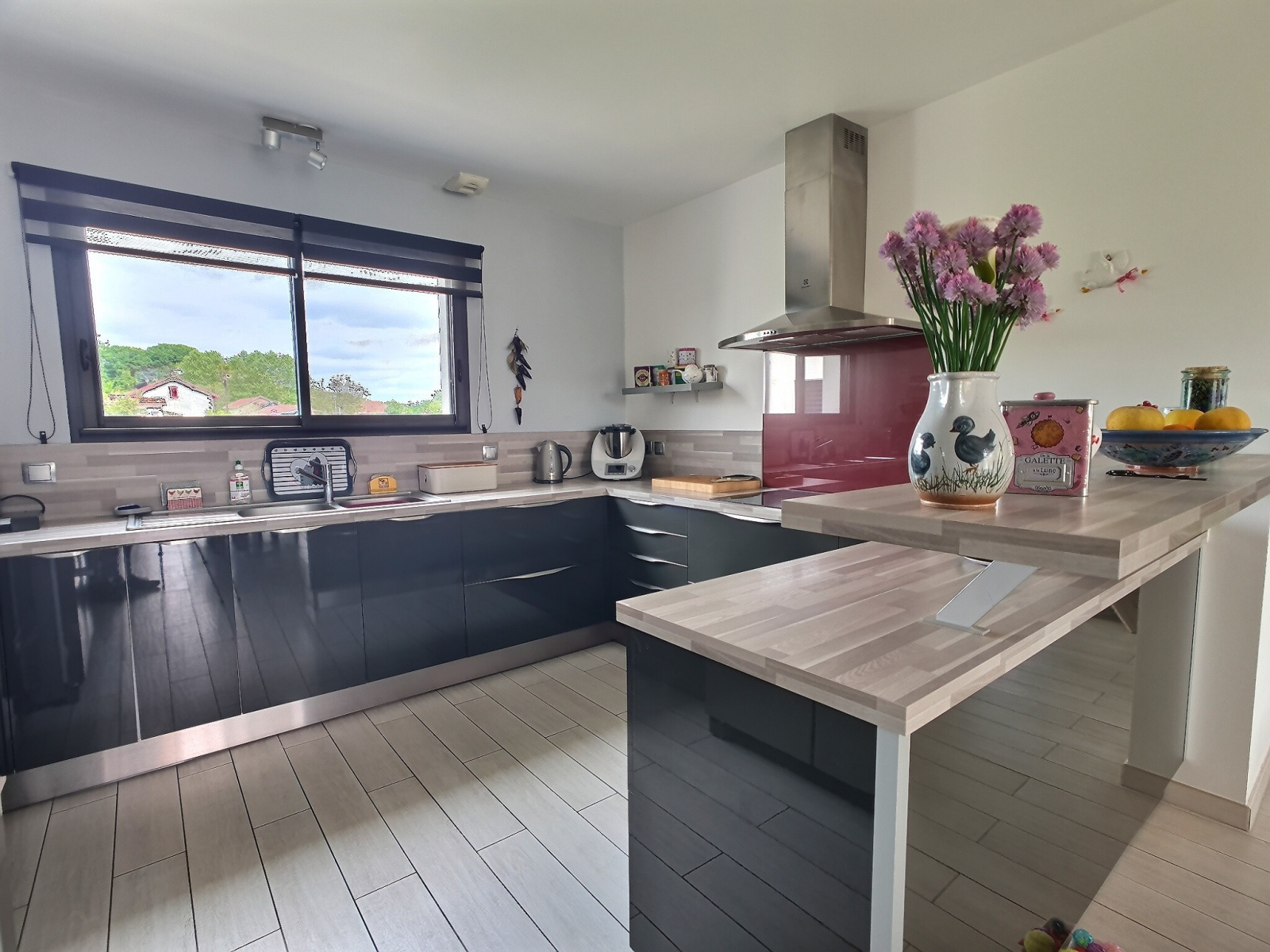 On accède à la propriété par un portail automatique Est et on entre dans la maison par le côté Nord, côté où se trouve également le garage. Le sol est carrelé et unifié sur l'ensemble de la propriété avec un système de chauffage de PAC réversible au sol et sur un chauffe-eau thermodynamique pour l'ECS. La maison répond aux normes de la RT 2012.