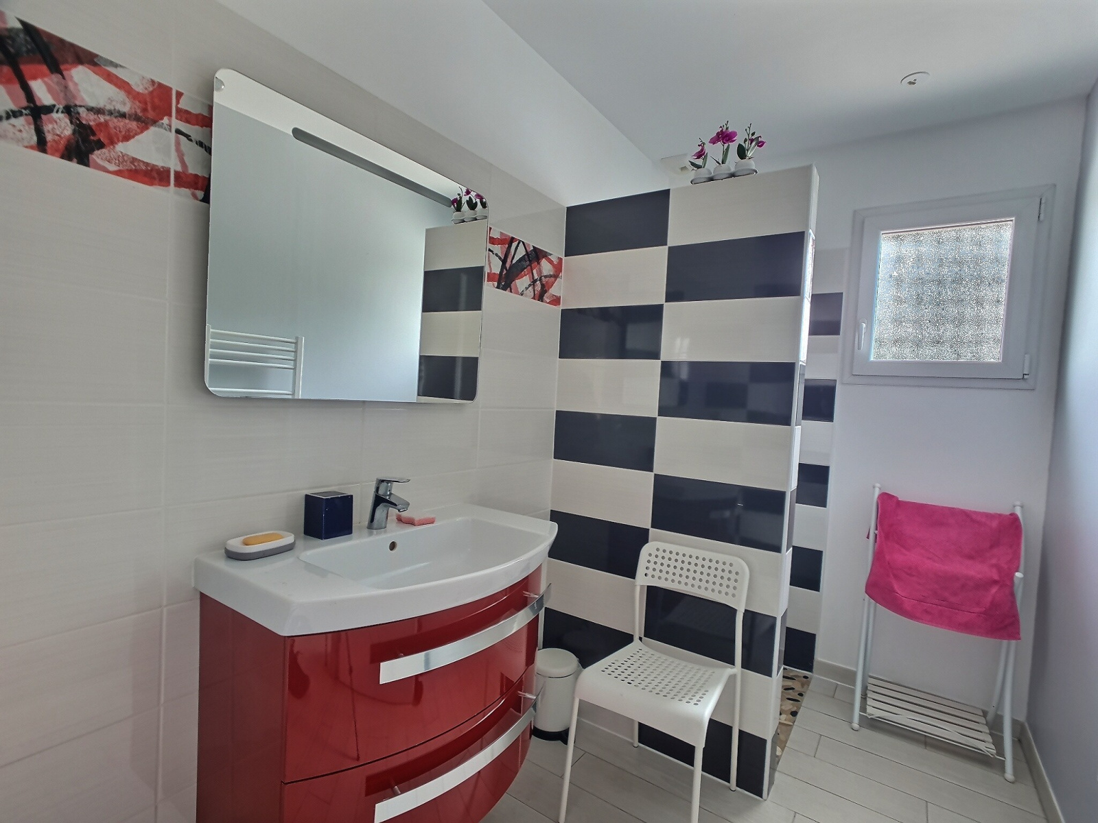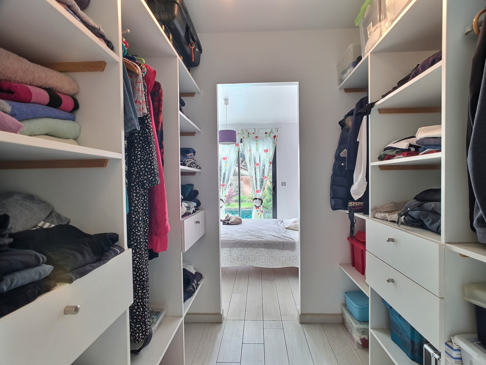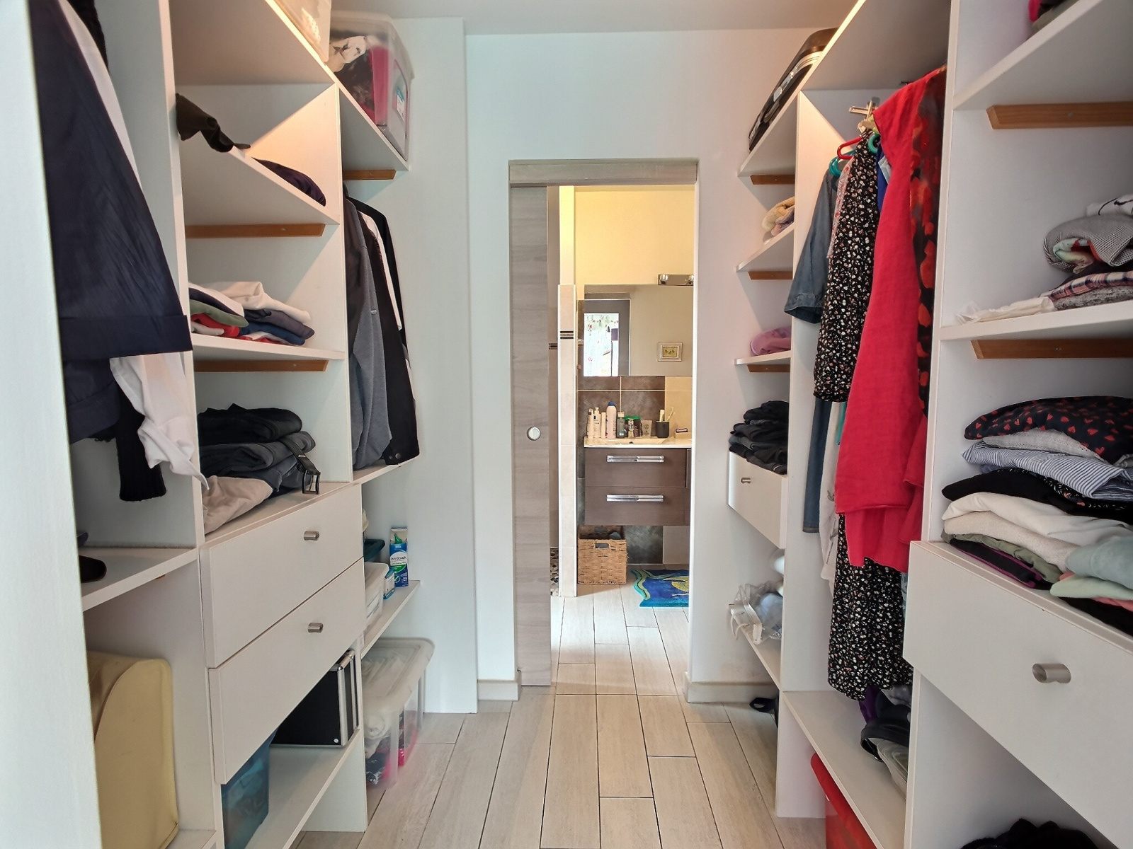 On accède à la propriété par un portail automatique Est et on entre dans la maison par le côté Nord, côté où se trouve également le garage. Le sol est carrelé et unifié sur l'ensemble de la propriété avec un système de chauffage de PAC réversible au sol et sur un chauffe-eau thermodynamique pour l'ECS. La maison répond aux normes de la RT 2012.