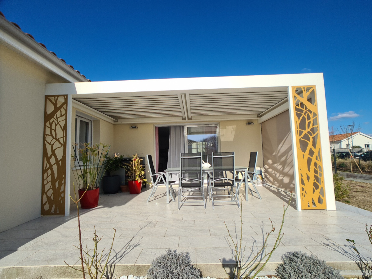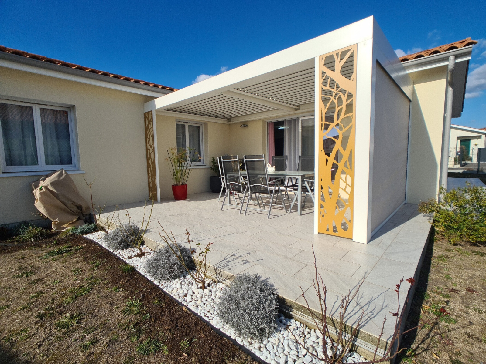 -une pergola bioclimatique 4.8mX3m sur la terrasse S d'environ 26m2.