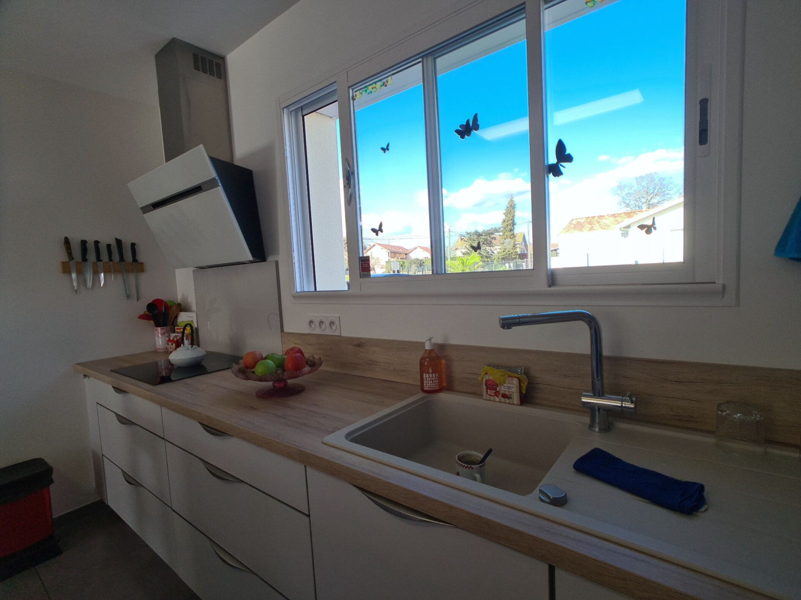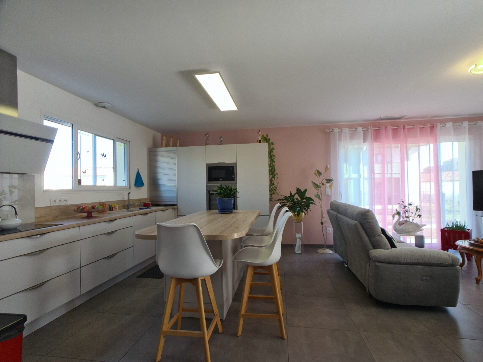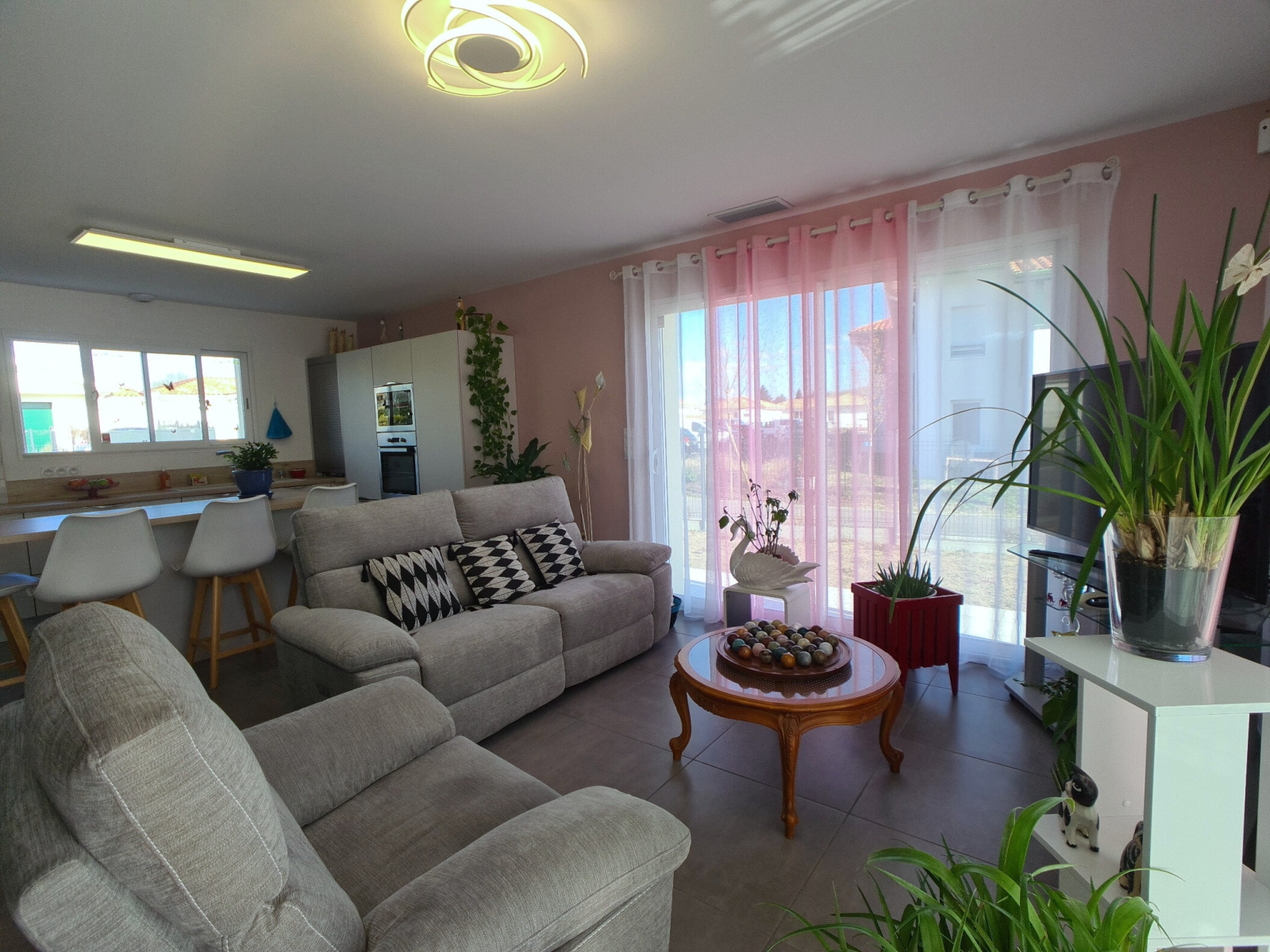 Maison neuve de 2020 de type T6 d'environ 116m2 comprenant 3 chambres, 1 Cellier/chambre, 1 SDE, 1 WC indépendant, 1 PAV comprenant 1cuisine ouver te et 1 Salon/SAM et 1 garage intégré au bâti rajoutant une 15aine de metre carré à la propriété.