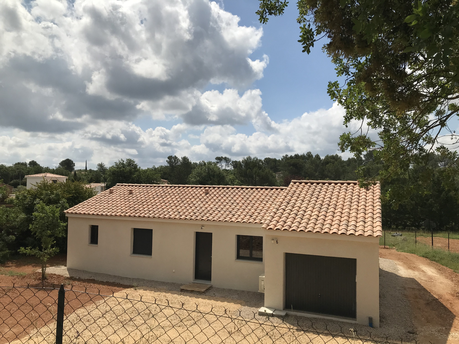 Exclusivité ! Saint Maximin, au calme, très belle villa individuelle de plain pied de 2021 avec garage sur un terrain plat de 2000 m2 environ.