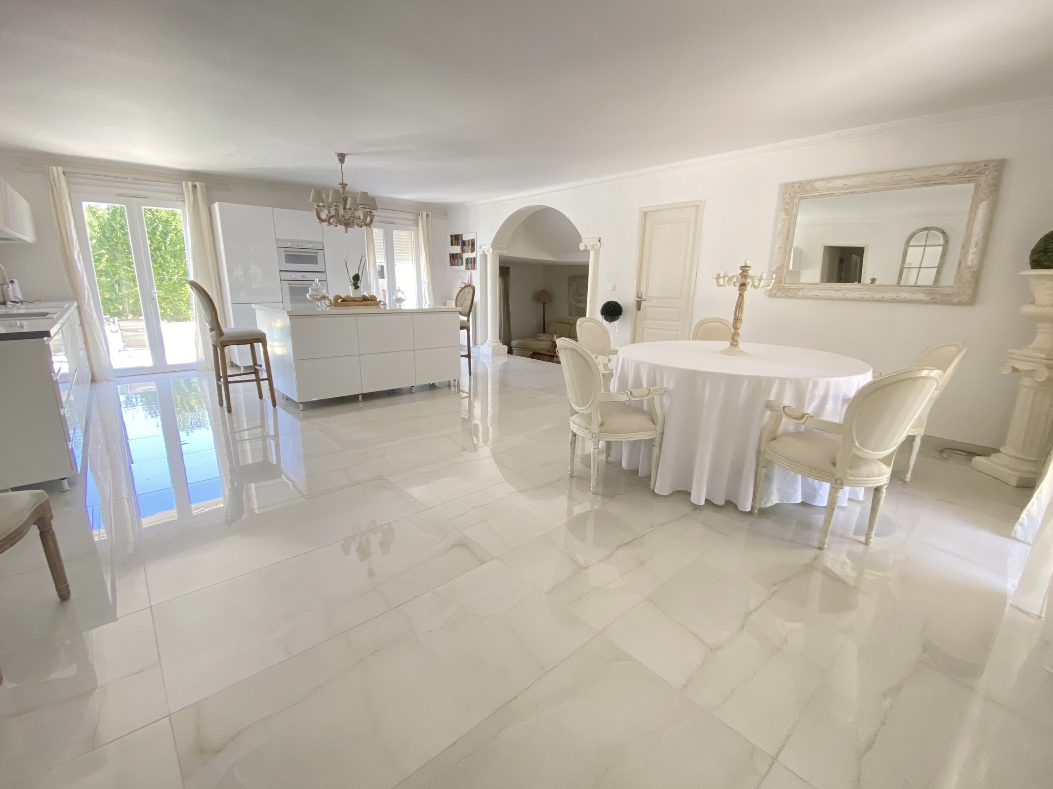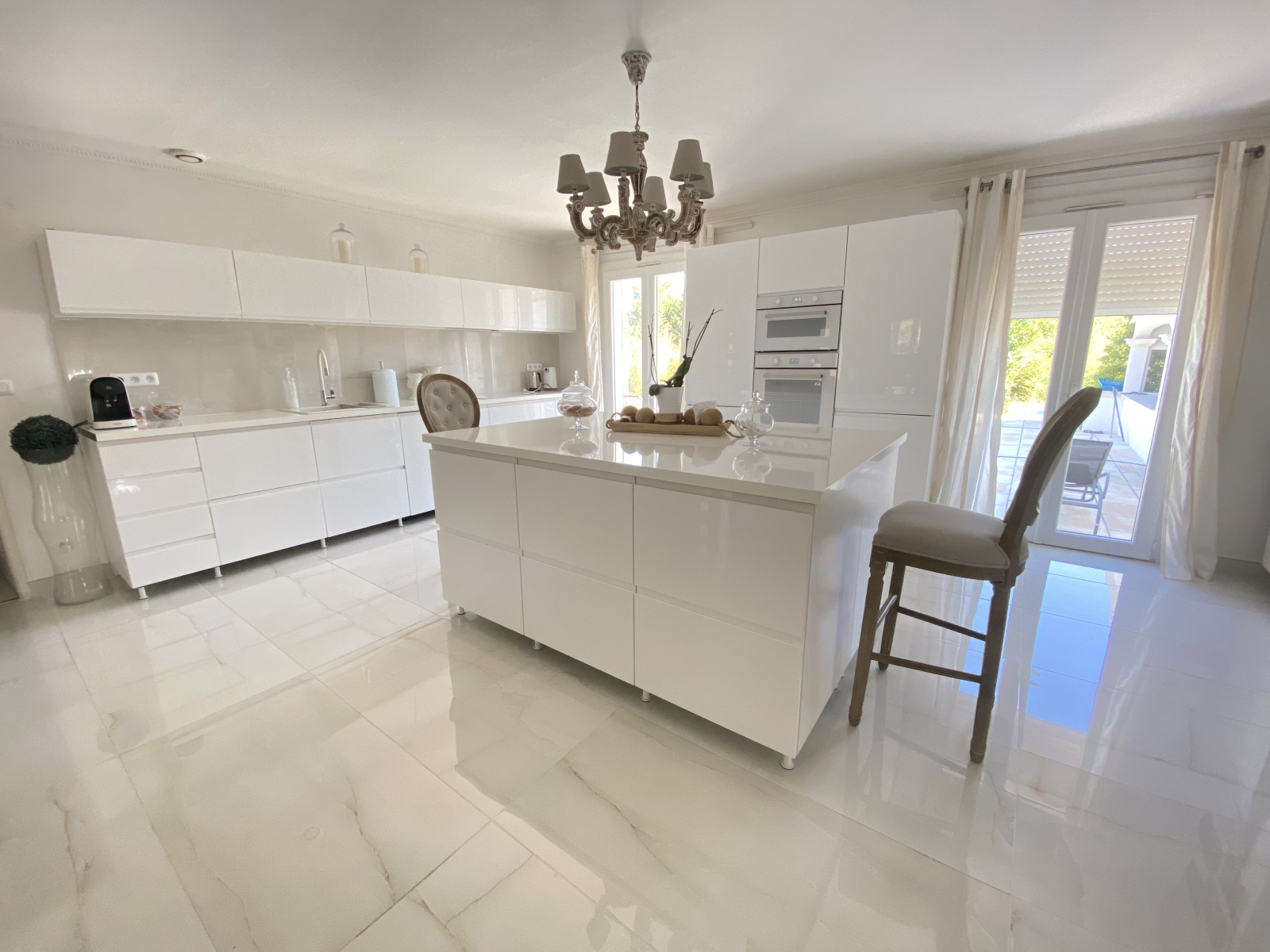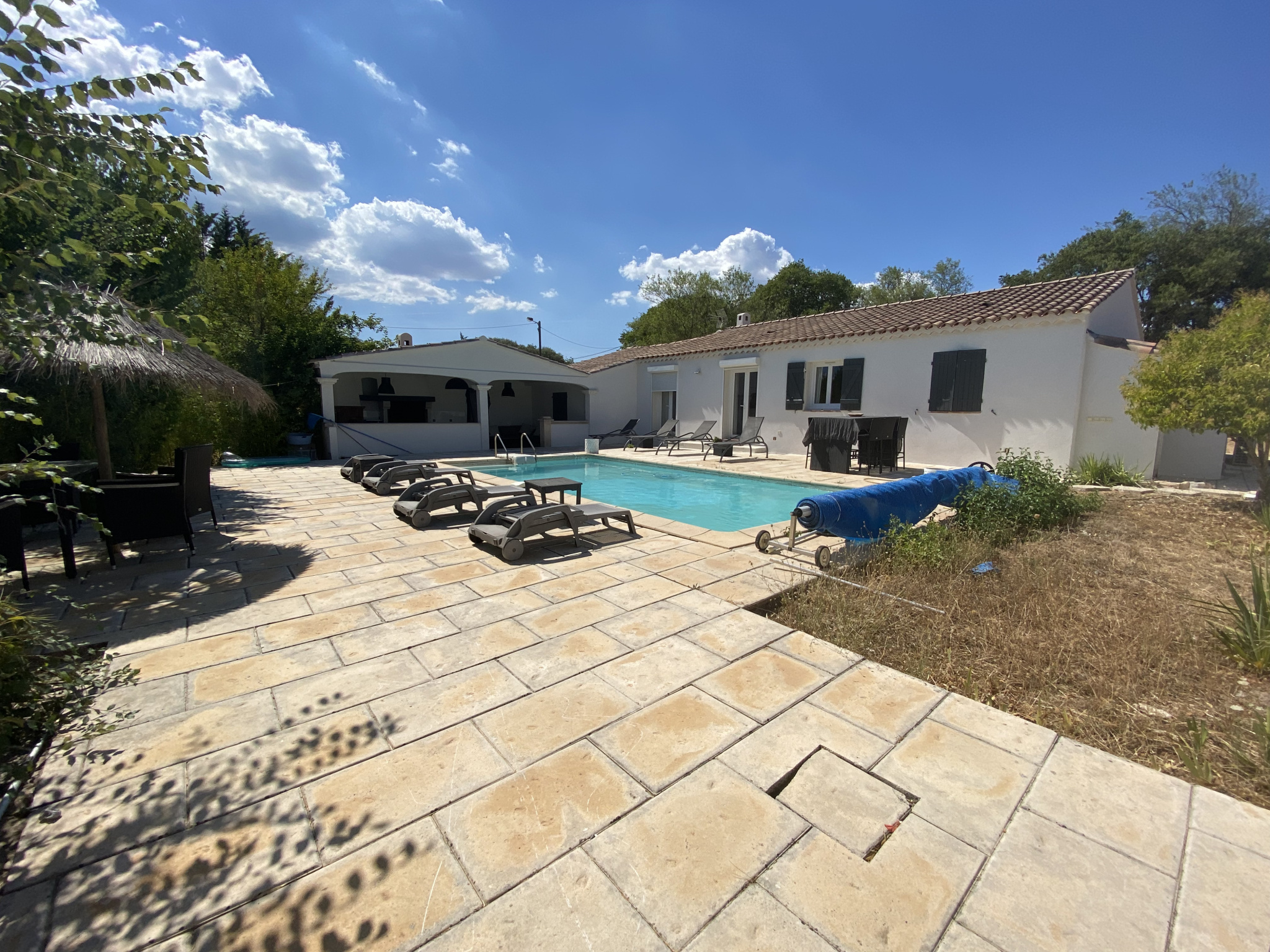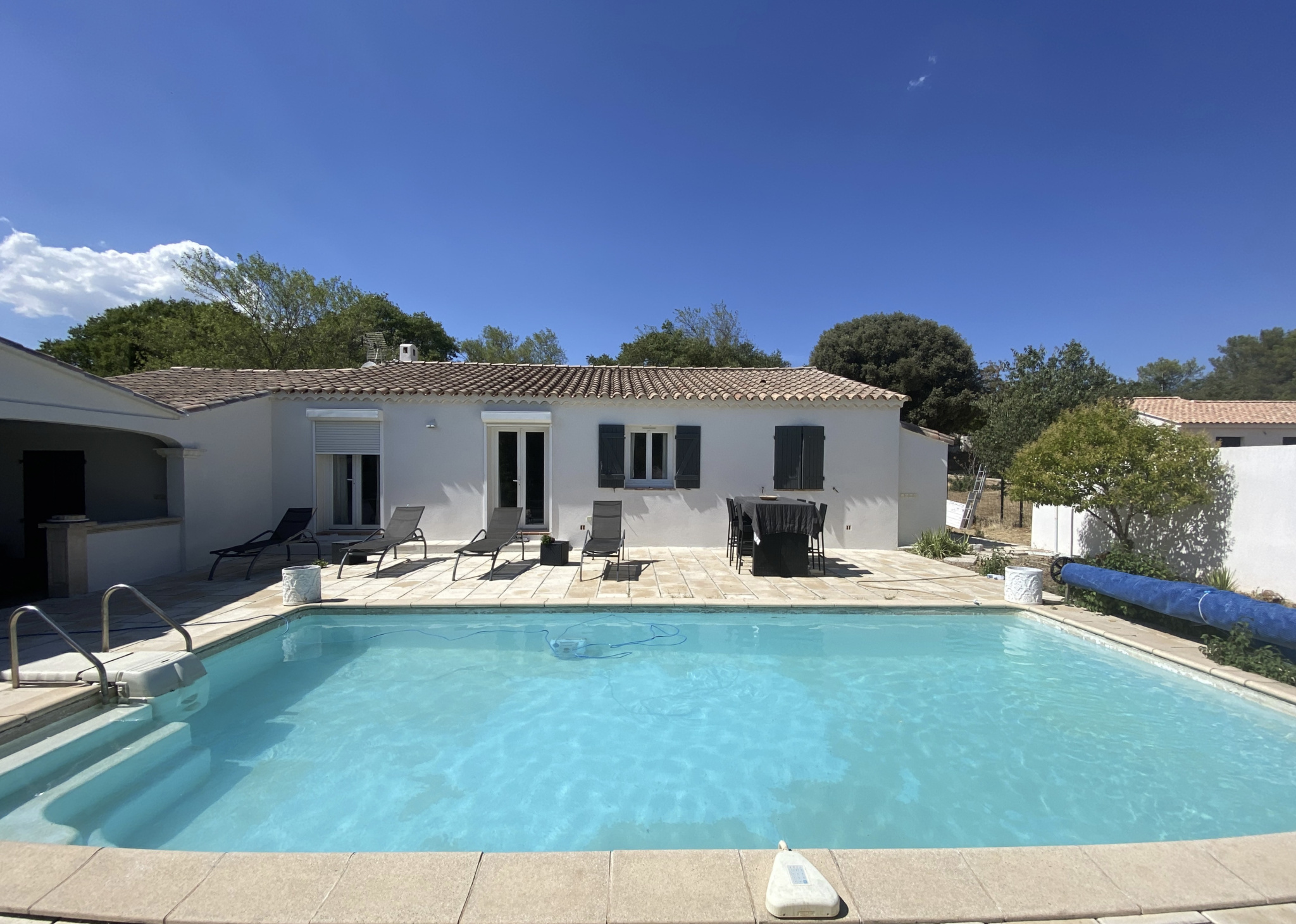 Très belle villa familiale avec une magnifique pièce à vivre de 67 m2 environ, cuisine entièrement équipée neuve, 4 chambres, 3 salles d'eau, wc, piscine avec terrasse et cuisine d'été de 30 m2.