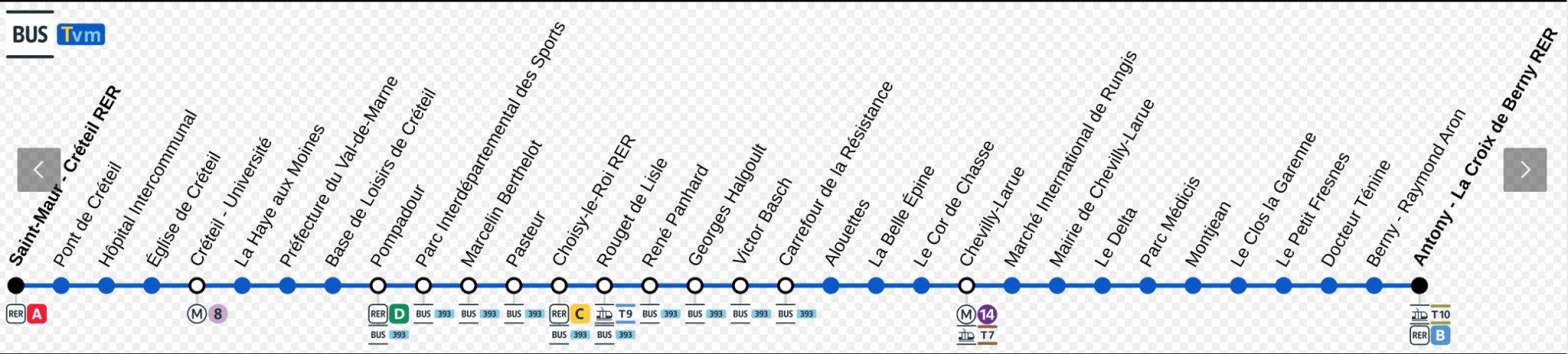 . Trans-Val-de-MARNE pour falicliter les déplacements de banlieue à banlieue au sein du VAL de MARNE et qui part de La CROIX de BERNY RER ANTONY en passant par FRESNES-CHEVILLY-LARUE-THIAIS-CHOISY-le-ROI-CRÉTEIL-SAINT-MAUR-des-FOSSÉS.