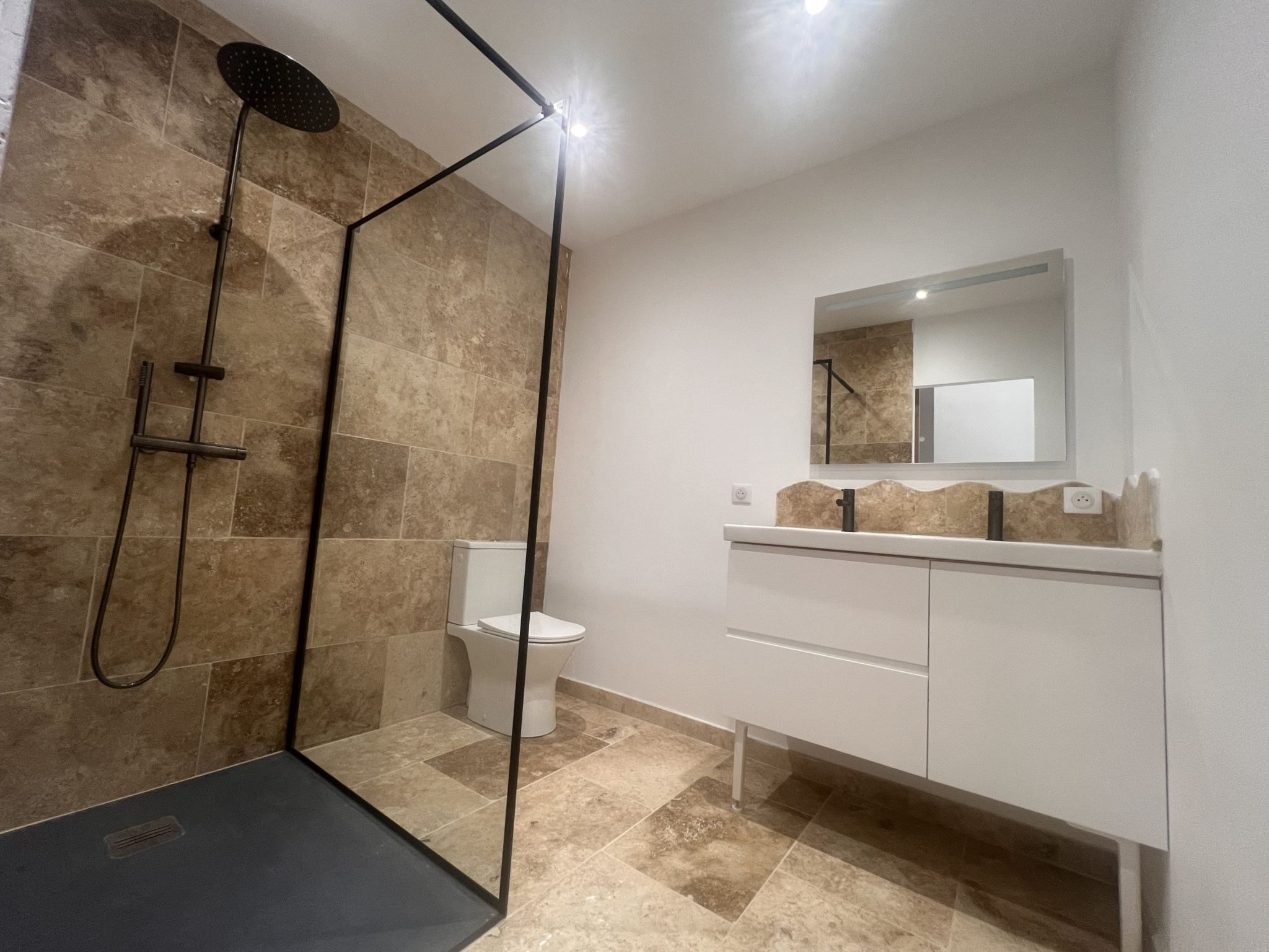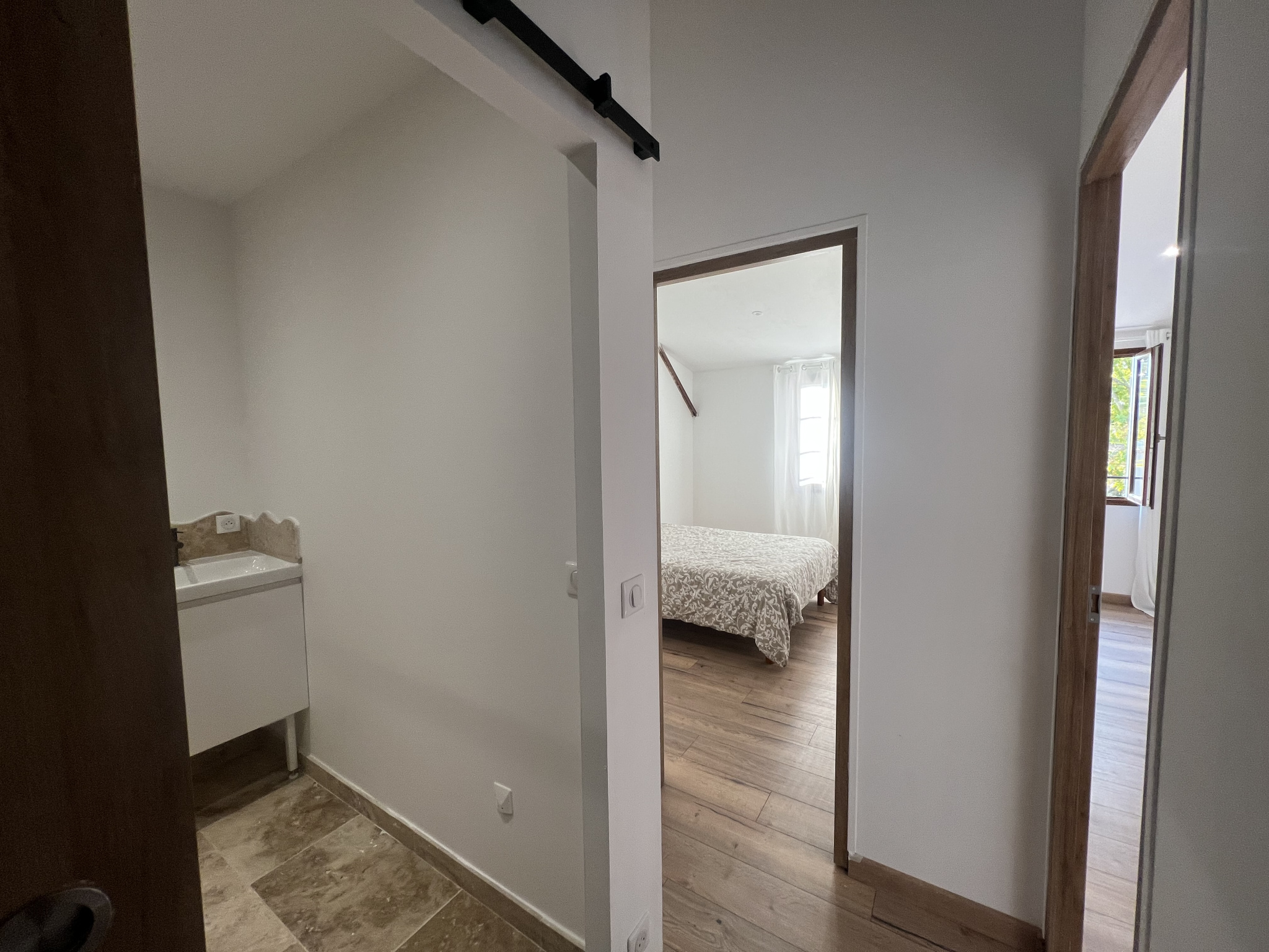 L’habitation et son intérieur intemporel : un grand volume particulièrement convivial et plaisant articule naturellement cuisine équipée, espace repas et salon. Le salon s'ouvre sur la cour à l'Est (parfaite pour la période estivale), entièrement close de murs. Un vrai havre à personnaliser. À l'étage : suite parentale avec dressing et salle d'eau privative, toilettes, plus deux chambres lumineuses partageant une seconde salle d'eau, toilettes. Tout est là.