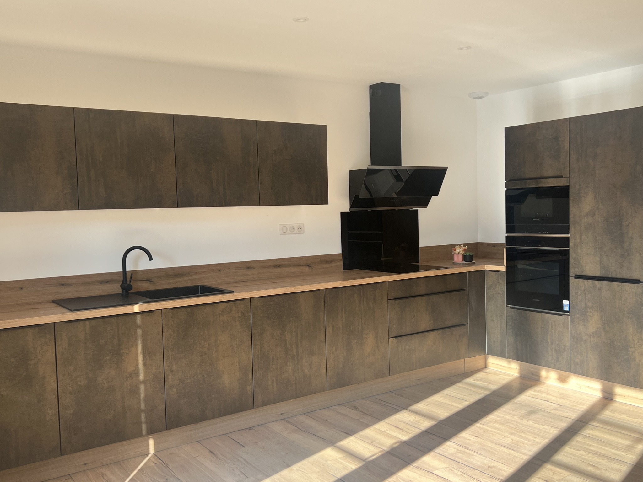 Photos non contractuelles — les extérieurs incluent une projection végétalisée assistée par IA. Les deux espaces extérieurs sont clôturés et n'attendent que votre touche végétale. Maison vendue non meublée (cuisine équipée incluse) avec 2 parkings faisant intégralement partie de la propriété.