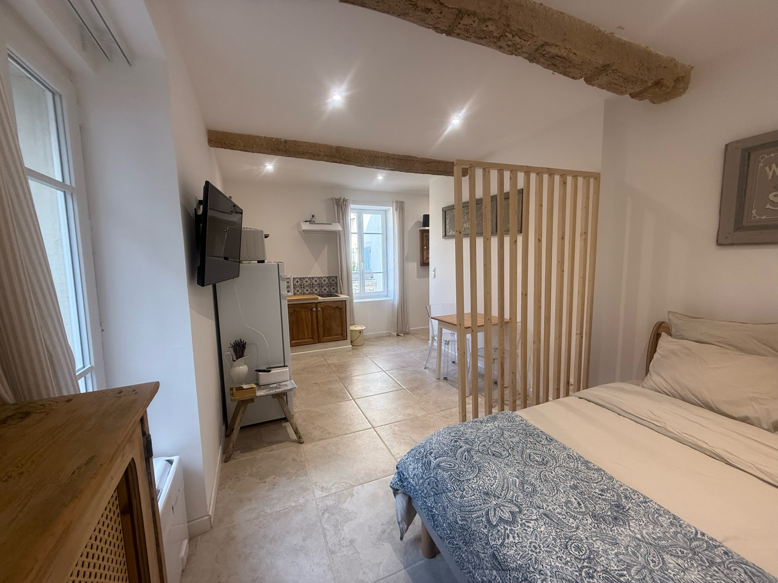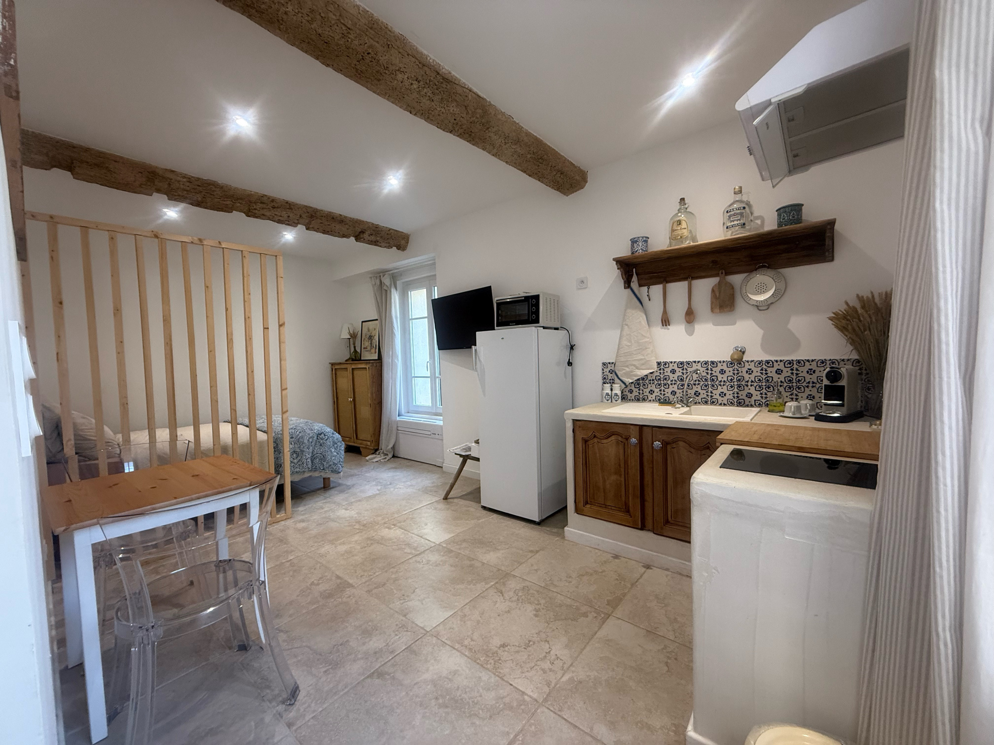 Dans le centre historique de l'Isle sur la Sorgue, je vous porpose à la vente ce magnifique studio refait à neuf il y à 2 ans seulement avec goût et de beaux matériaux, en RDC d'un petit immeuble calme.