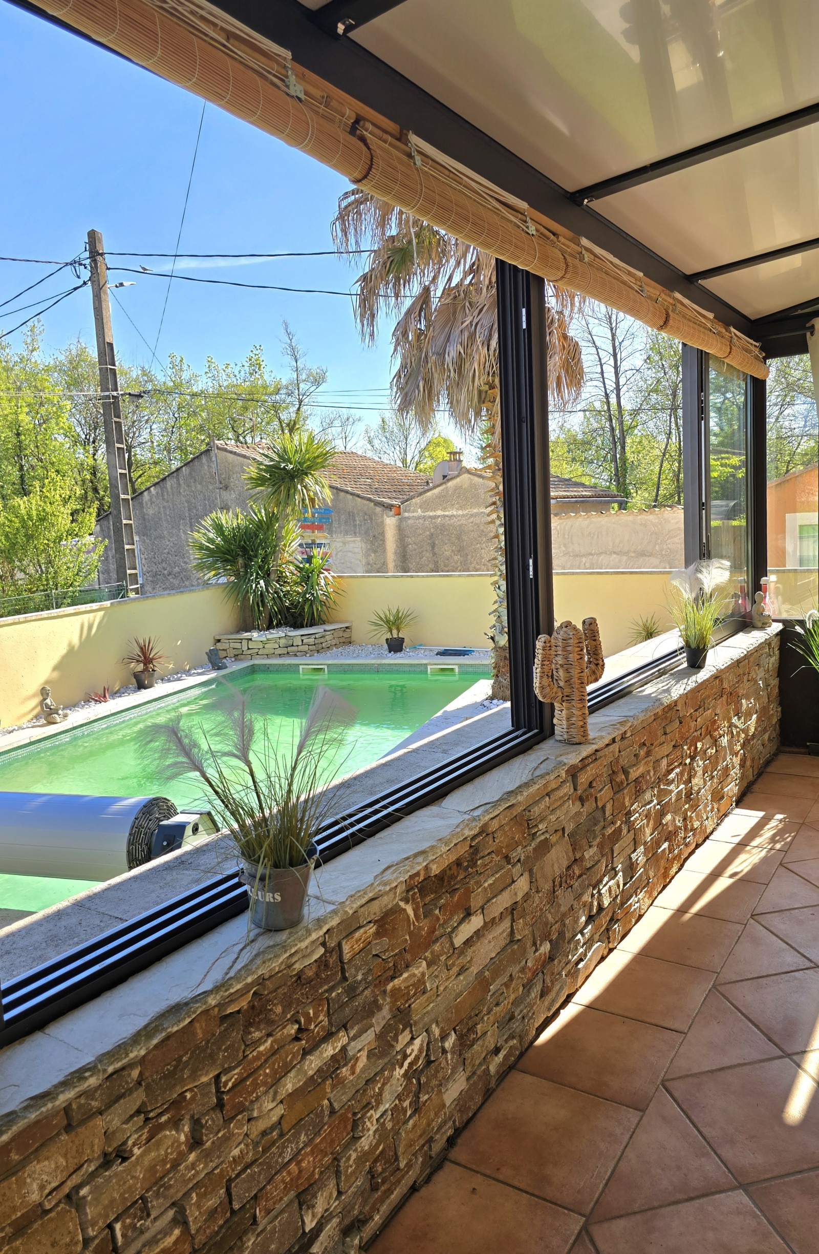 - Piscine maçonnée 8 x 4 m avec volets roulants et son agréable pool house