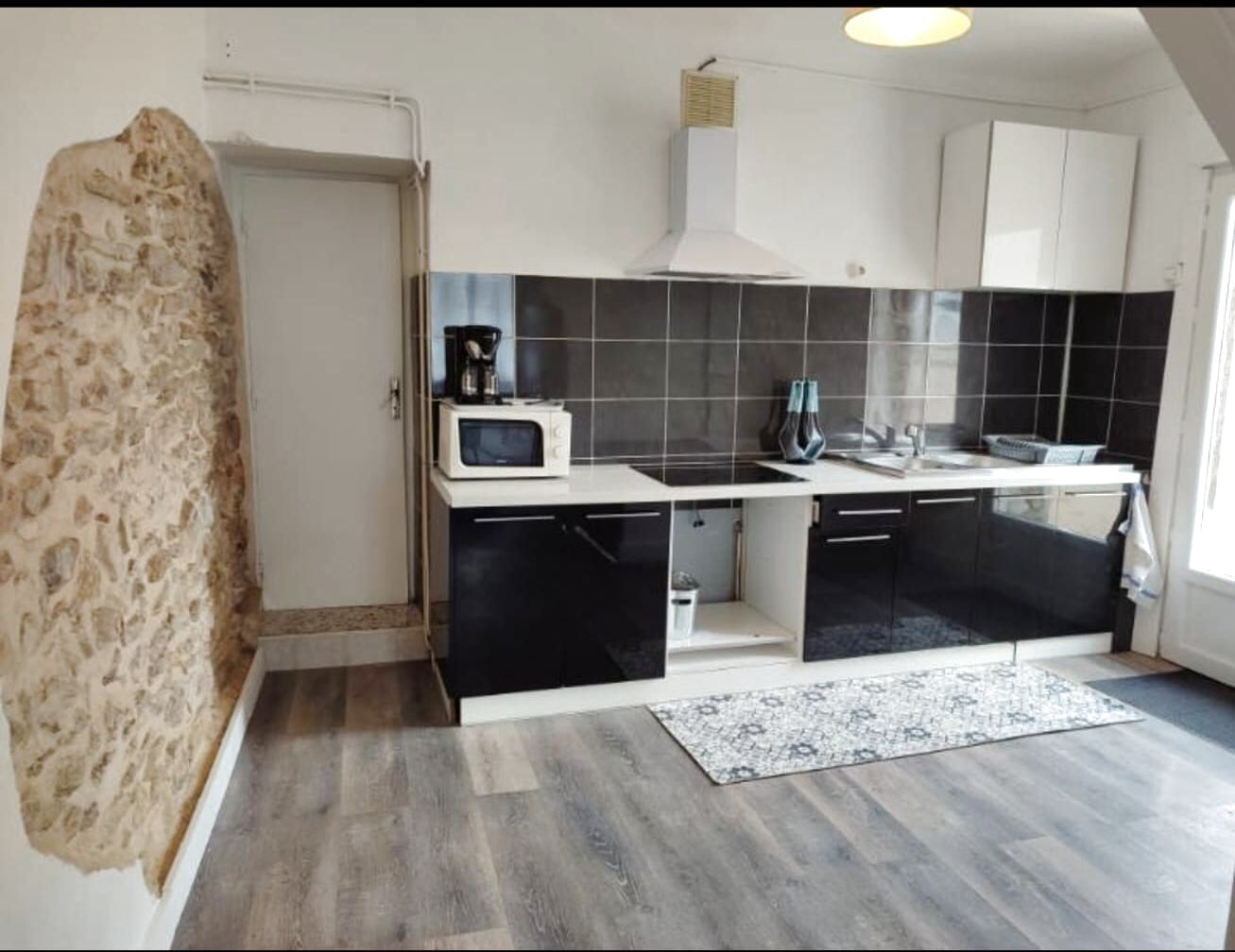Elle propose une belle pièce de vie lumineuse, ouverte sur une cuisine équipée, avec accès direct au terrain par une porte vitrée, donnant sur un espace extérieur plus intime et agréable, idéal pour profiter des beaux jours en toute tranquillité.