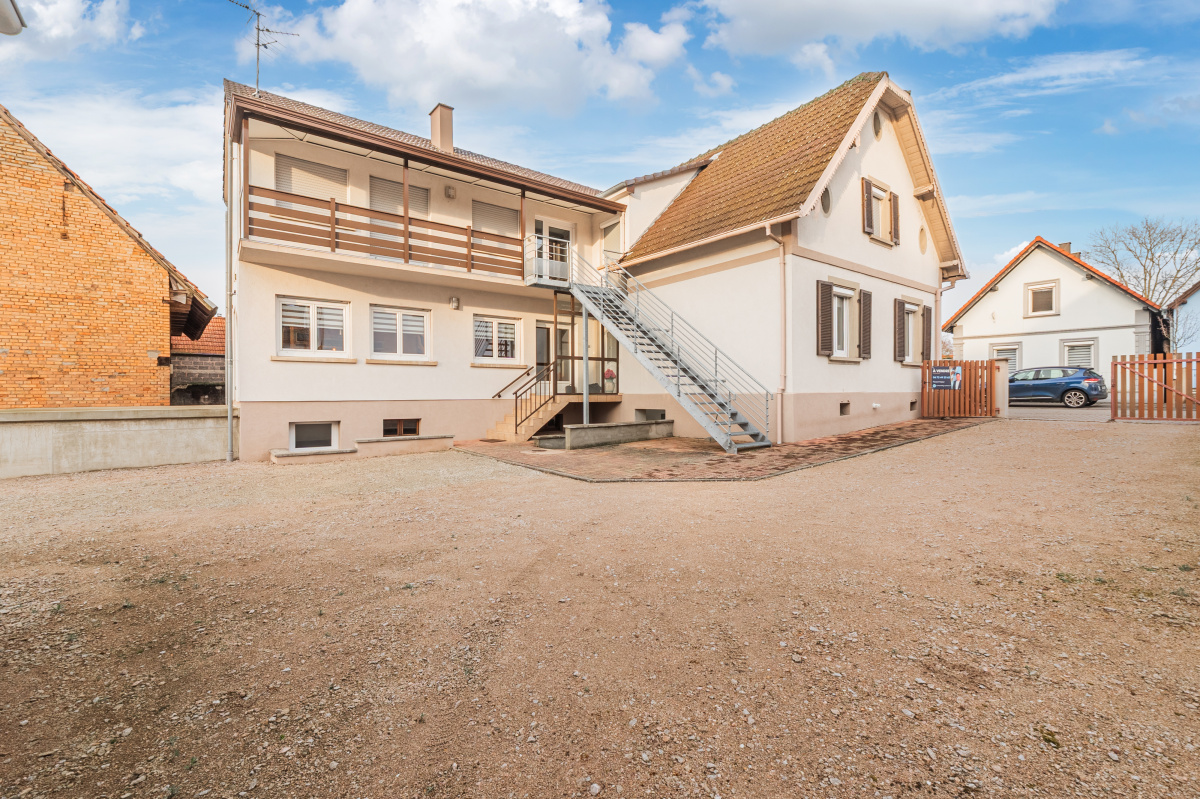 Vous cherchez de l’espace, de la flexibilité et un vrai potentiel d’exploitation ? Située à Rountzenheim / Auenheim, cette maison individuelle en monopropriété développe environ 200 m² habitables, sur une belle parcelle de 10,76 ares, avec une configuration rare : deux appartements déjà constitués, autonomes, et deux entrées séparées — idéal pour accueillir deux familles, loger un proche, ou envisager la location d’un des deux logements.