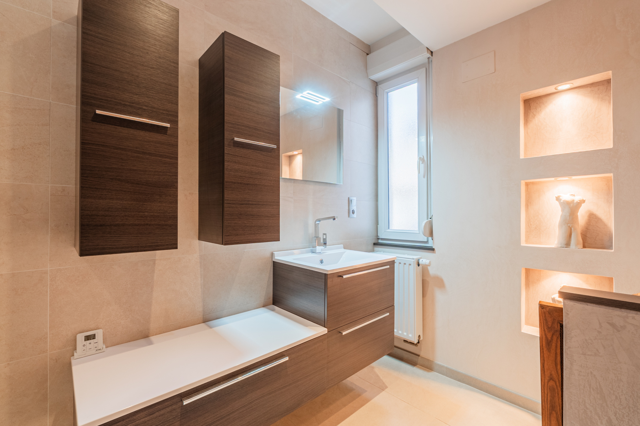 Salle de bain rénovée avec meuble vasque et WC suspendu