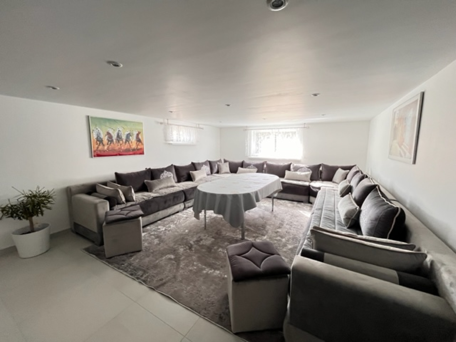 Un sous-sol entièrement aménagé avec un espace salon d'environ 30 m², une buanderie, une salle d'eau, un hammam ainsi que sa pièce détente, un garage double.