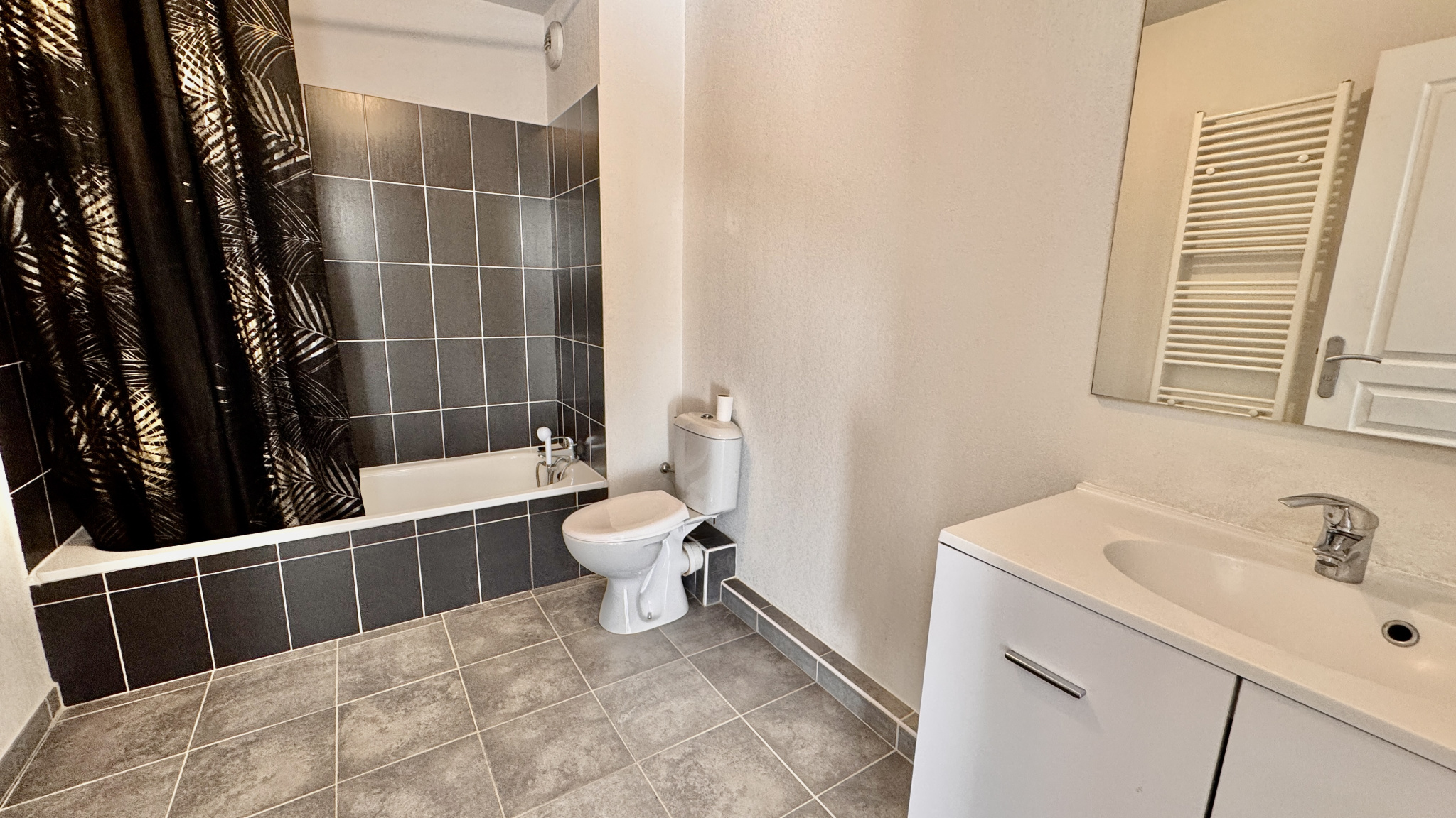 A quelques minutes seulement de Polygone Riviera, ce charmant T2 vous séduira avant tout pour la quiétude du secteur où il se trouve. Immédiatement autour, principalement de petites habitations suffisament éloignées les unes des autres pour que le chant des oiseaux nous parvienne sur la terrasse de presque 7m2.