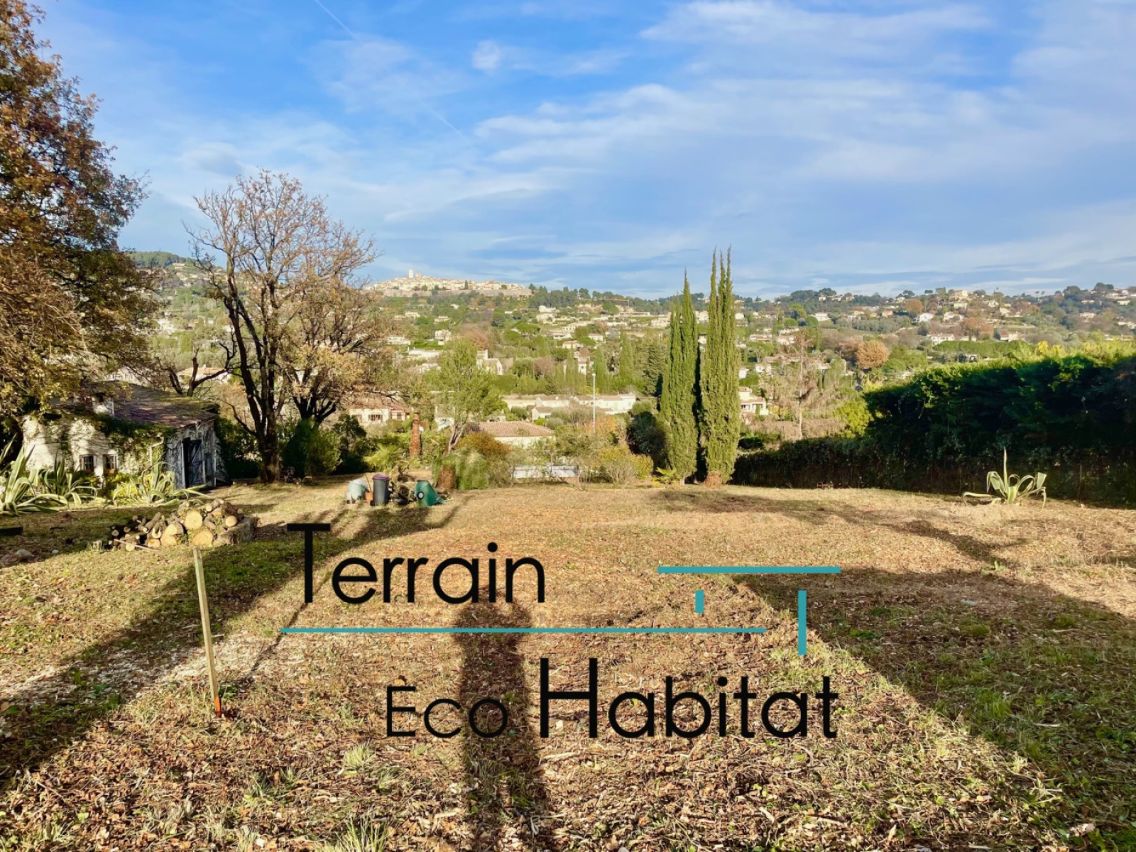 À proximité immédiate du centre du village de La Colle-sur-Loup, très joli terrain de 1 355 m² bénéficiant d’une magnifique vue sur le village de Saint-Paul-de-Vence.