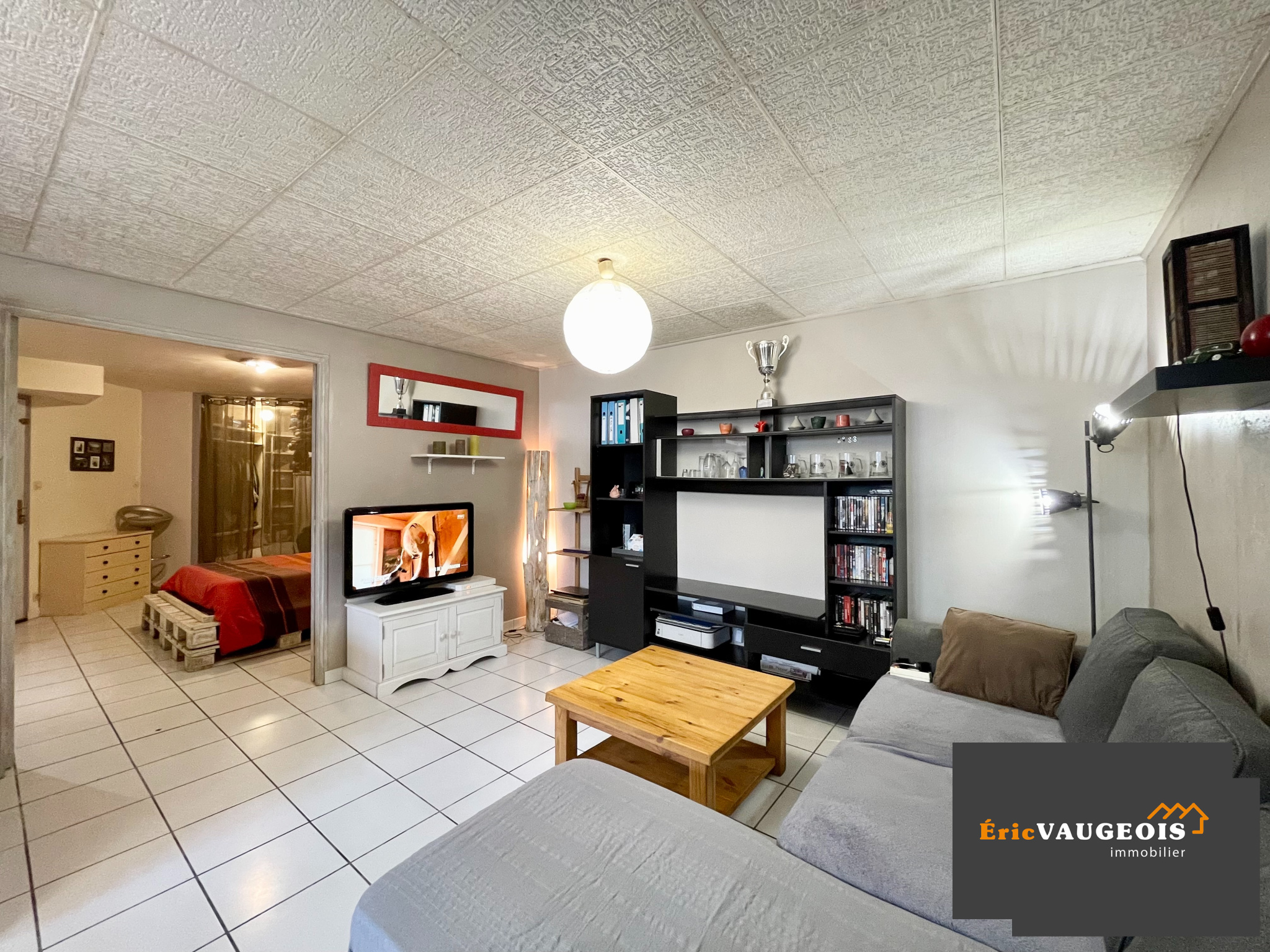 EXCLUSIVITÉ de l'agence Eric VAUGEOIS immobilier. Eric VAUGEOIS vous propose ce grand studio en rez-de-chaussée de plus de 43 m² face gare de la Ferté-sous-Jouarre. Il comprend : Entrée sur Séjour avec Cuisine aménagée - Grande chambre avec dressing - Salle de bains avec WC et coin buanderie. Équipement : Fenêtre PVC double vitrage. Ballon d'eau chaude 150L. Chauffage électrique par convecteurs type éco. Raccordé au tout-à -l'égout conforme. Internet haut débit par SDSL (Fibre en cours). Extérieur : Jardin de plus de 22 m² permettant d'avoir un coin terrasse et de rentrer son véhicule par grand portail. Cave en sous-sol avec accés direct par l'appartement. Charges de copro avec provision d'eau de 110 E/mois. Petite copro de 8 logements seulement. Taxe foncière de 593 E/an. Disponible de suite ! A visiter sans tarder.