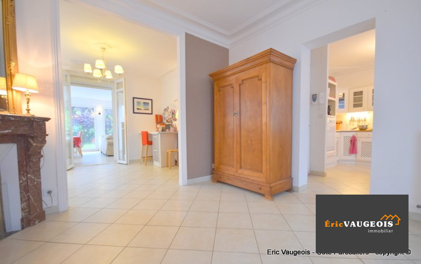 Exclusivité de l'Agence Eric VAUGEOIS immobilier à Coulommiers au milieu de la rue piétonne. Eric VAUGEOIS vous propose au centre ville de Nogent l'Artaud (02310) à deux pas de la gare cette superbe maison non mitoyenne de 230 m² environ comprenant : Grande entrée - Bureau - Cuisine aménagée et équipée - Cellier - Dégagement - Séjour de plus de 40 m² lumineux en triple expositions donnant sur jardin. Au premier : Palier - Suite parentale de 32 m² environ avec sa salle de bains et wc séparée - deux superbes chambres de 16 et 27 m². au dernier : Palier - Salle d'eau avec WC - 2 grandes chambres de 12 et 29 m². Terrain de plus de 900 m² plat, clos, arboré et fleuri au calme et sans vis à vis. Garage de 27 m² avec coin chaufferie et buanderie. En sous-sol : cave voutée authentique de 18 m². Taxe foncière de 608 euro€/an. Chauffage central gaz de ville. Dépendance de 40 m² + grenier aménageable de 30 m² + abris de 29 m² Idéal pour artisan ou profession libérale ou location (à aménager). au fond du jardin une autre dépendance de 18 m². La maison à été entièrement refaite, aucun travaux à prévoir. Excellent état et belle prestation. A visiter avec charme absolu.