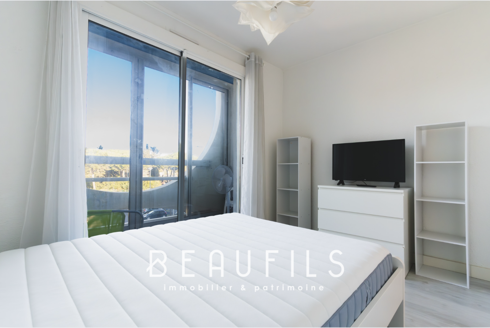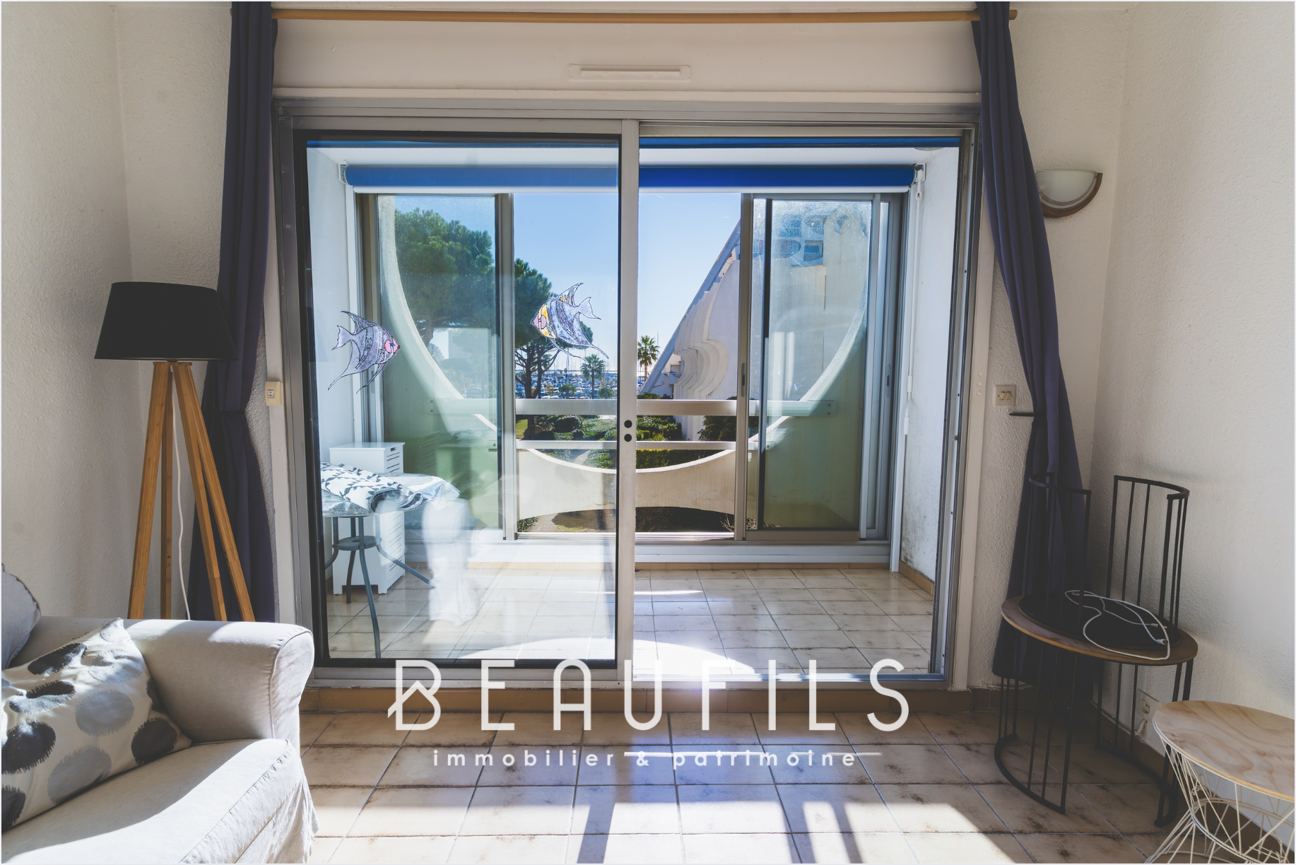 La Grande Motte - Vue mer/port - En première ligne sur le port de plaisance dans une résidence haut-de-gamme, découvrez cet appartement T2 BIS en duplex d'environ 50m², avec belle vue sur le port, les jardins de la résidence et aperçu mer ! Doté d'un parking privatif numéroté et niché au 2ème étage avec ascenseur, ce bien traversant offre un espace de vie lumineux donnant sur une loggia exposée SUD de 5.45m², une cuisine équipée, chambre avec loggia de 3.50m², un coin nuit indépendant, cellier, une salle de bain et WC séparé. Ravalement de façade en cours déja intégralement réglé par le vendeur. Prestations qualitatives : double vitrage 2025, compteur électrique récent, vendu meublé, calme absolu, vue sans vis-à -vis. Proximité immédiate des plages, commerces, restaurants... Pour organiser une visite, contactez Anthony Fages 07.71.15.70.03 - Honoraires à la charge du vendeur RCS 831 872 304 - www.xbimmoinvest.com/honoraires.pdf
