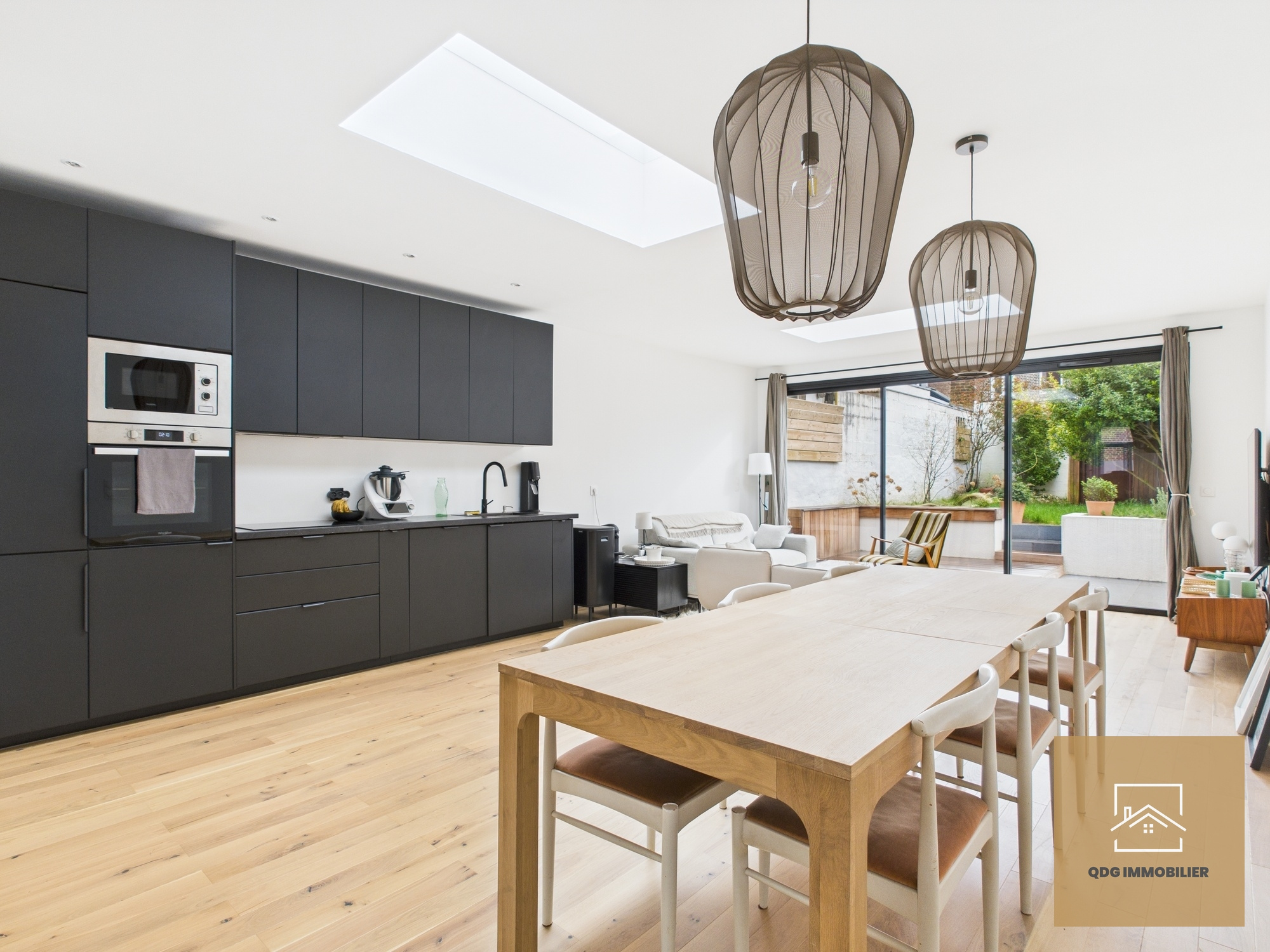 Elle offre : - Une belle pièce de vie spacieuse avec une entrée, salon, salle à manger et cuisine ouverte, donnant sur un jardin plein sud pour profiter du soleil toute la journée.