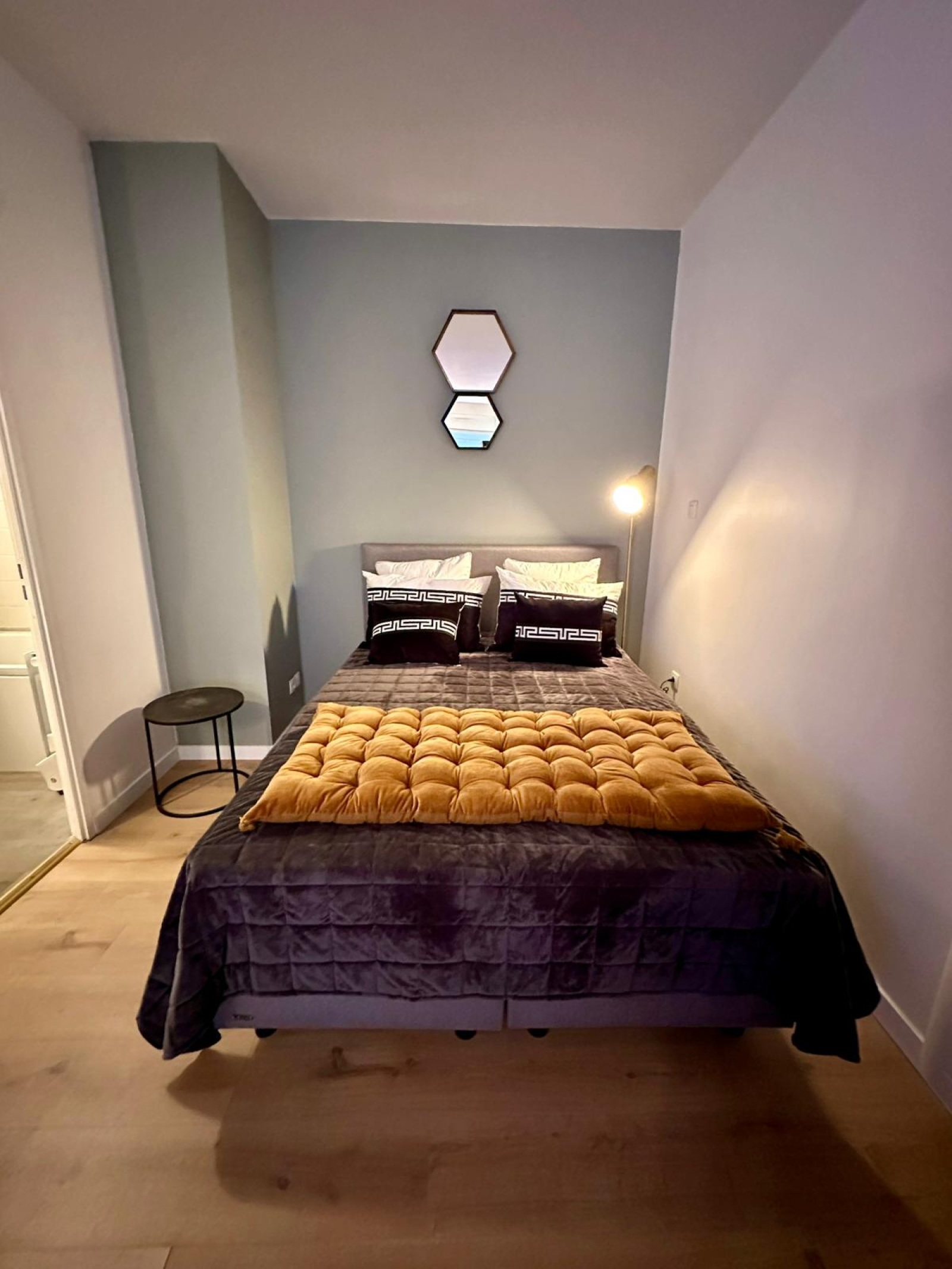 Au détour du coin cuisine : un espace nuit, pouvant être séparé du salon (possibilité d’aménager en T2). Salle de douches avec WC.