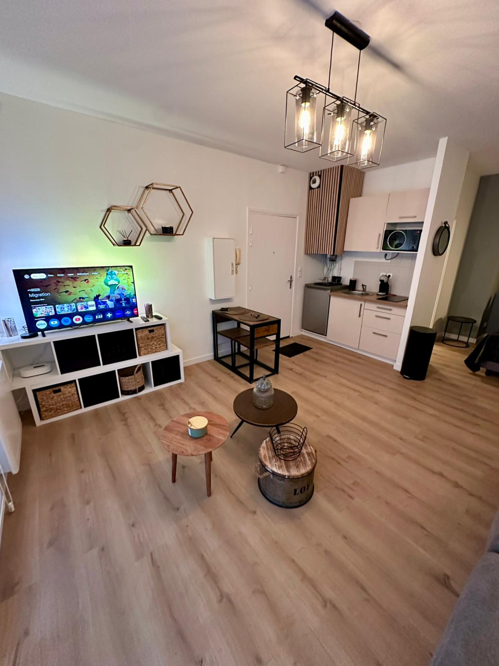 Parfaitement agencé en « L », l’entrée donne directement sur l’espace de vie.
