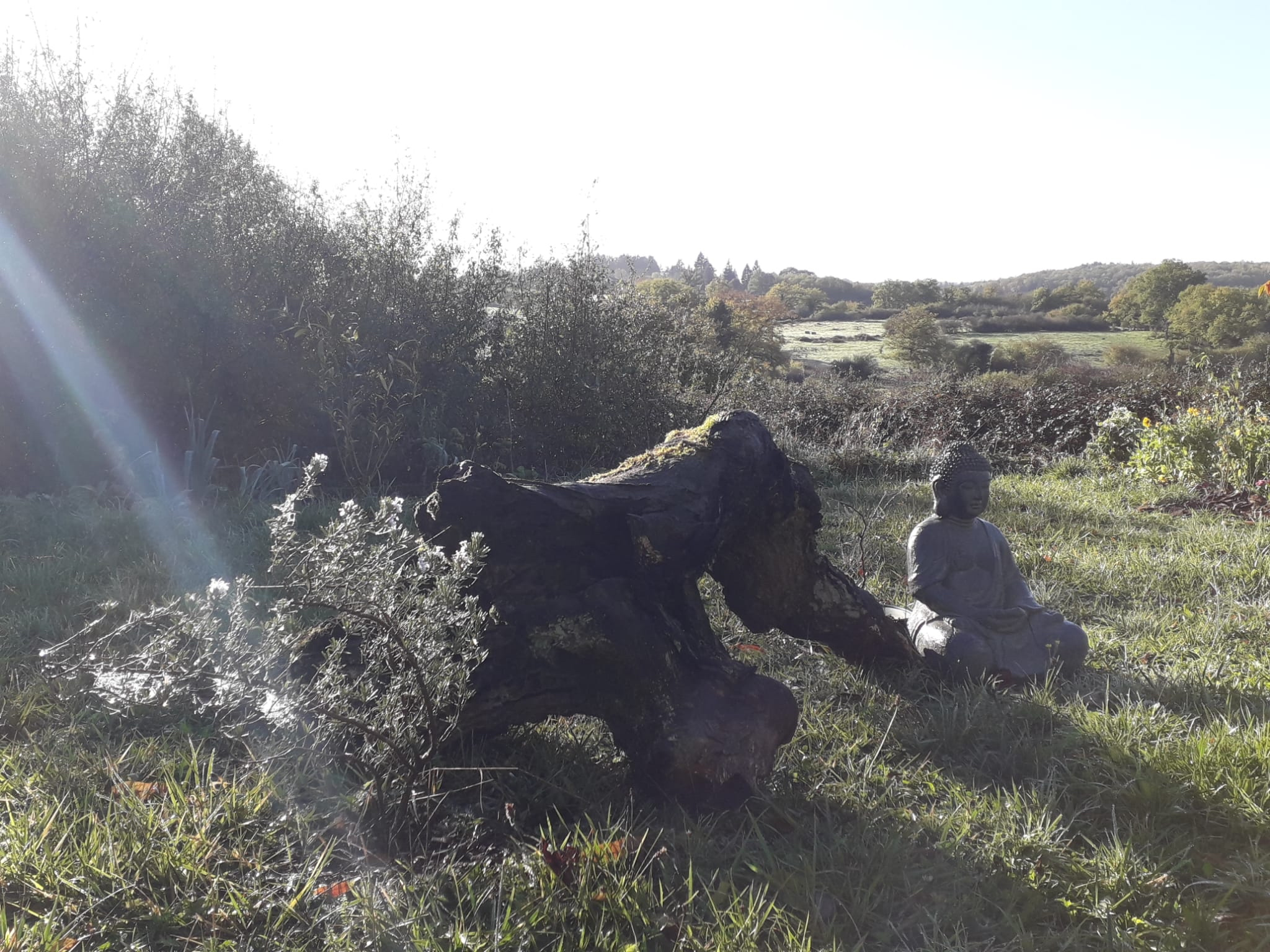 Elle dispose d'un jardin non attenant proche de la maison avec une vue panoramique sur la nature.