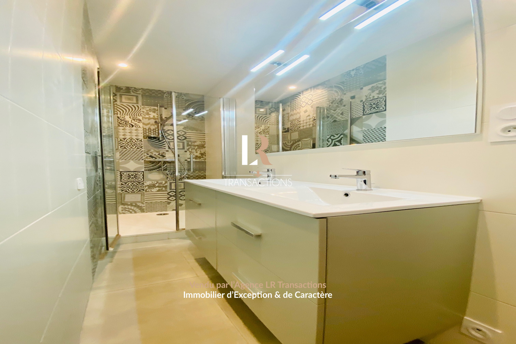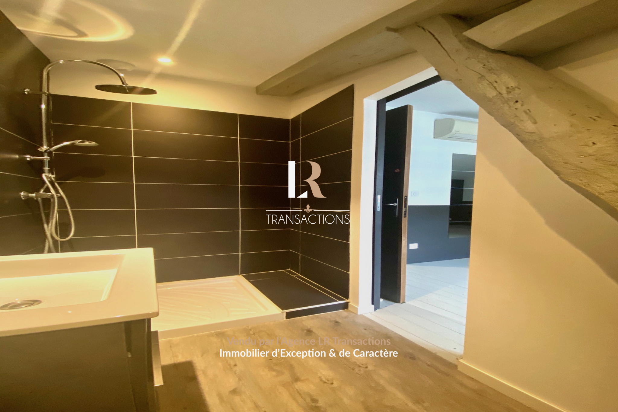 Au 1er étage, magnifique pièce de vie traversante avec cuisine ouverte et cheminée en pierre, donnant sur une grande terrasse sans vis-à -vis. Une chambre avec placard et salle d’eau. WC indépendant.