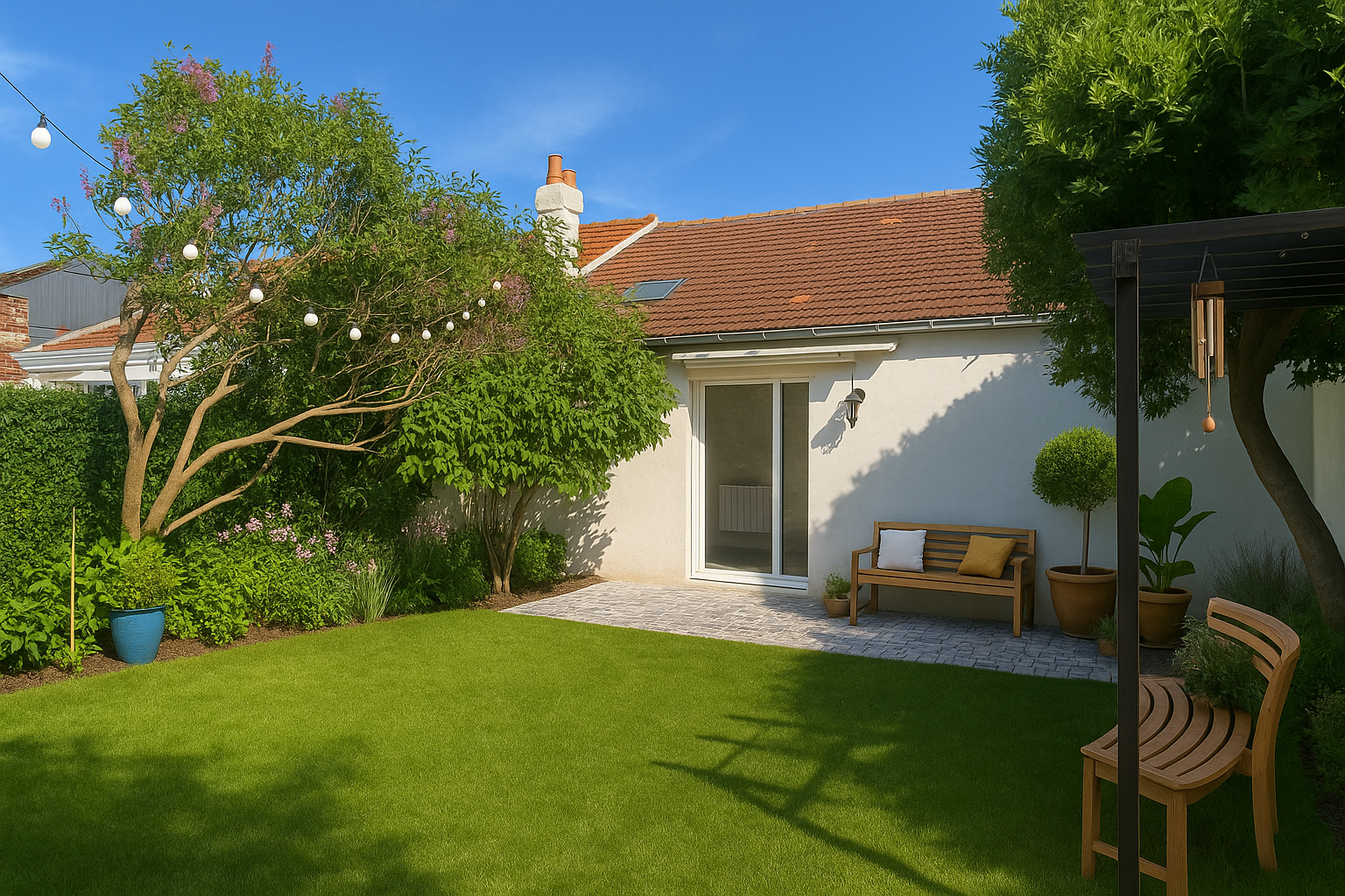 Villa 2 chambres possibilité 3 chambres. grand salon trés lumineux, salle de bain avec baignoire et douche, jardin privé. Quartier prisé à 7 minutes en Vélo de la plage de la Concurence et du centre ville historique. Proximité école , maternelle, primaire, collége et lycée. Bus à 200 m.Â