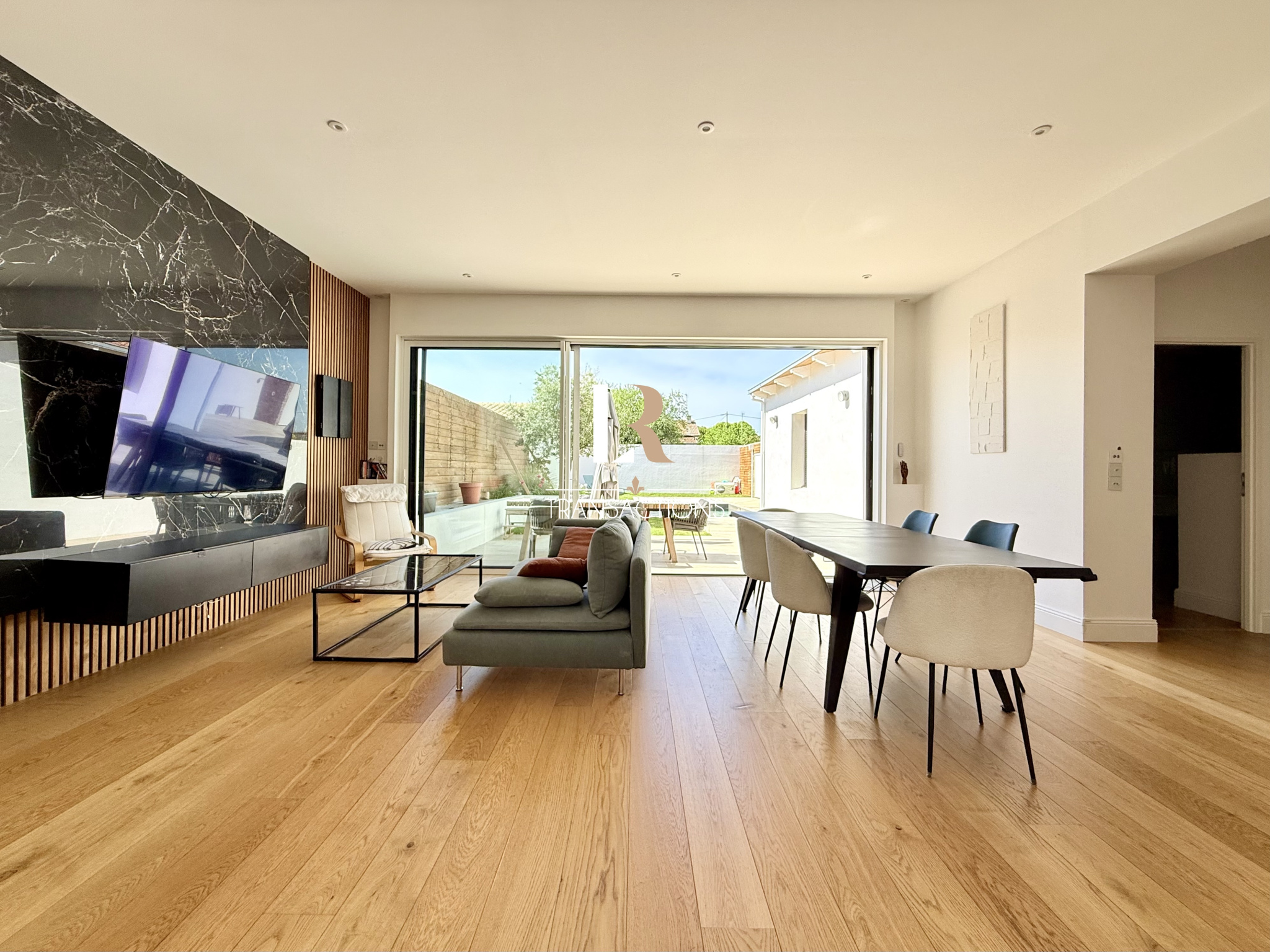Dans une rue calme, à 20min à pieds du marché et avec accès rapide à la gare, jolie maison de plain-pied, entièrement rénovée en 2021 avec jardin Ouest, piscine et garage.