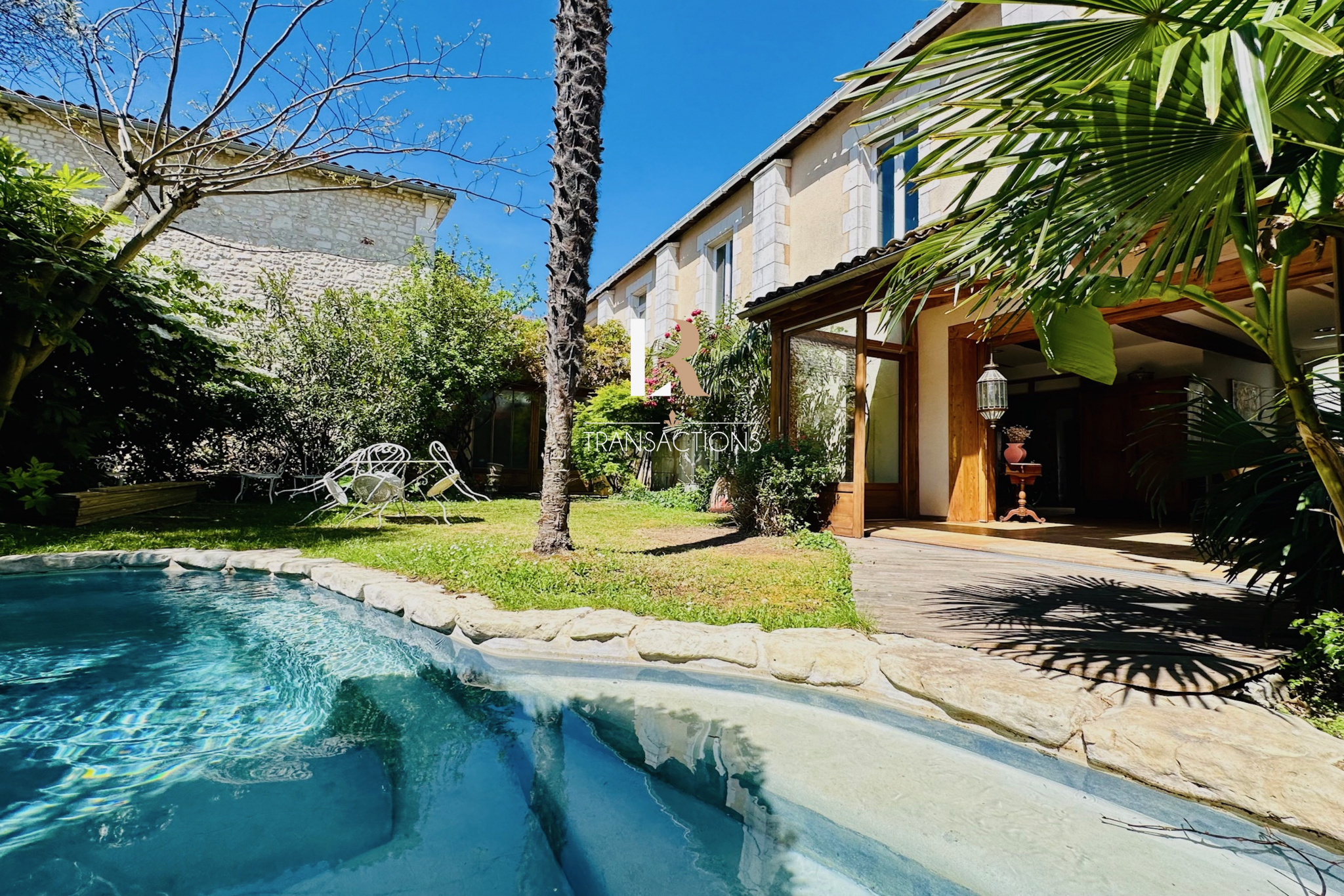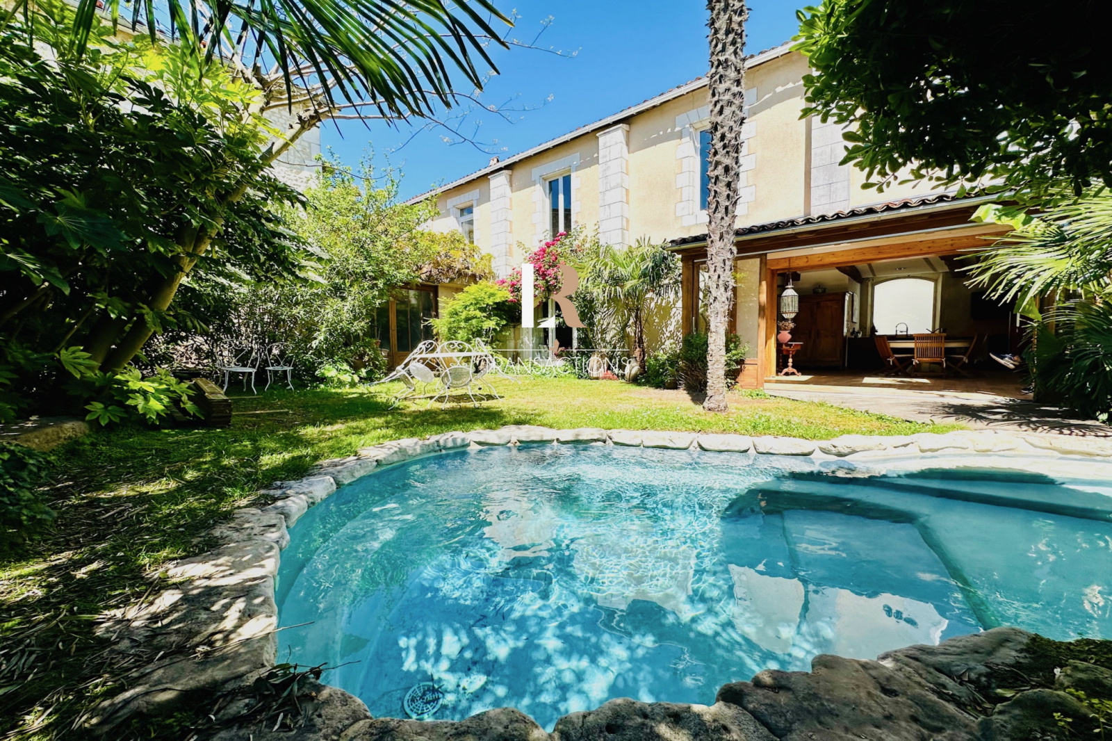 Côté extérieur, vous serez sous le charme de ce magnifique jardin arboréet sa pisicne en pierre, exposé Sud, cet endroit sera parfait pour profitez du climat rochelais, clos de murs en pierre et sans aucun vis-à -vis.