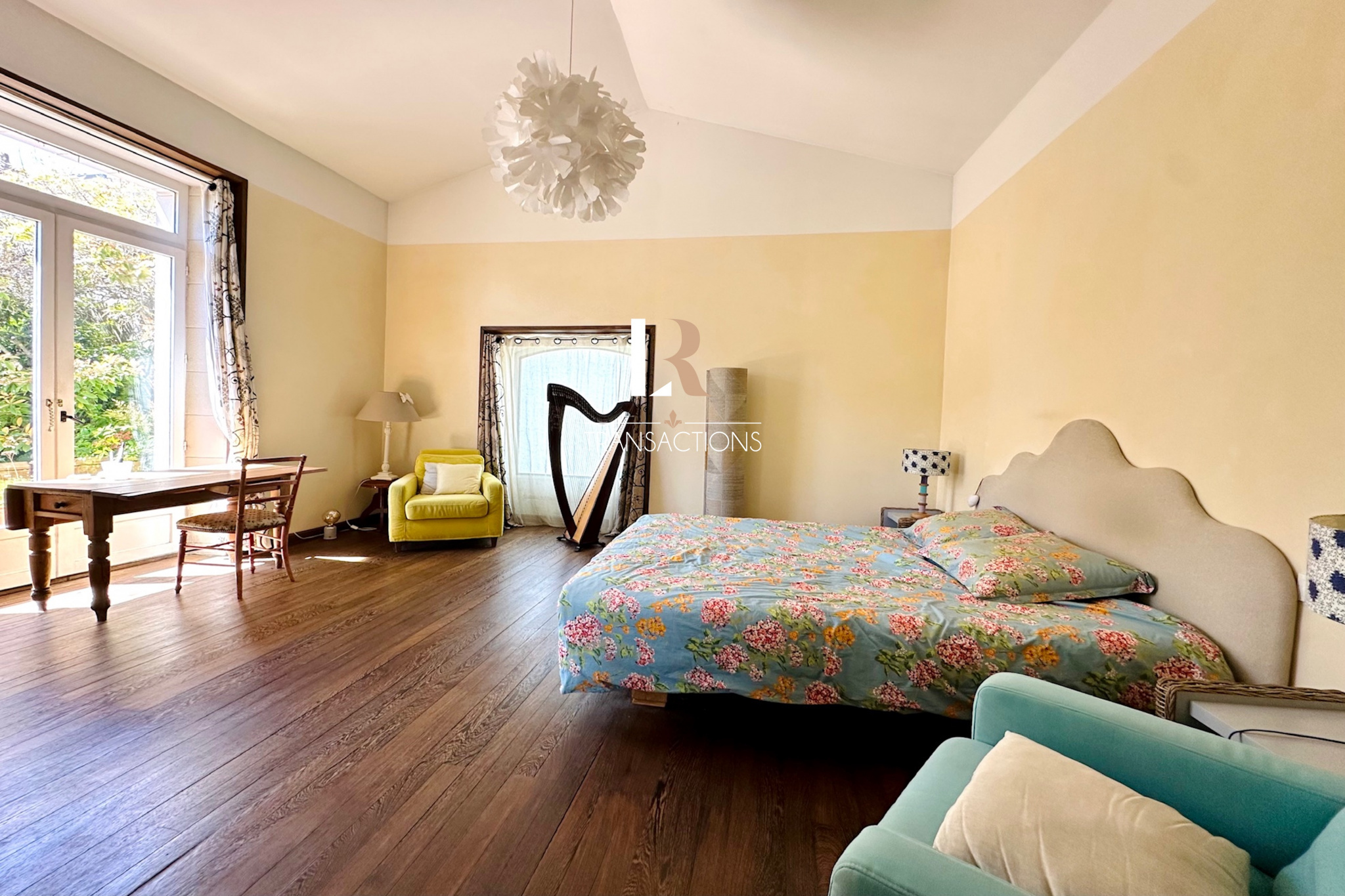 Derrière cette façade se cache une bâtisse ancienne, cette dernière propose plus de 200m2 sur deux niveaux, les volumes sont généreux, une vastre entrée centrale dessert sur sa gauche l'espace repas avec cuisine et son avancée vitrée ouverte sur le magnifique jardin verdoyant sans vis-à -vis. Sur sa droite, un spacieux salon avec cheminée, lui aussi ouvert sur le jardin. Une belle pièce faisant office de bureau pouvant être transformé en chambre parentale complète le rez-de-chaussée;