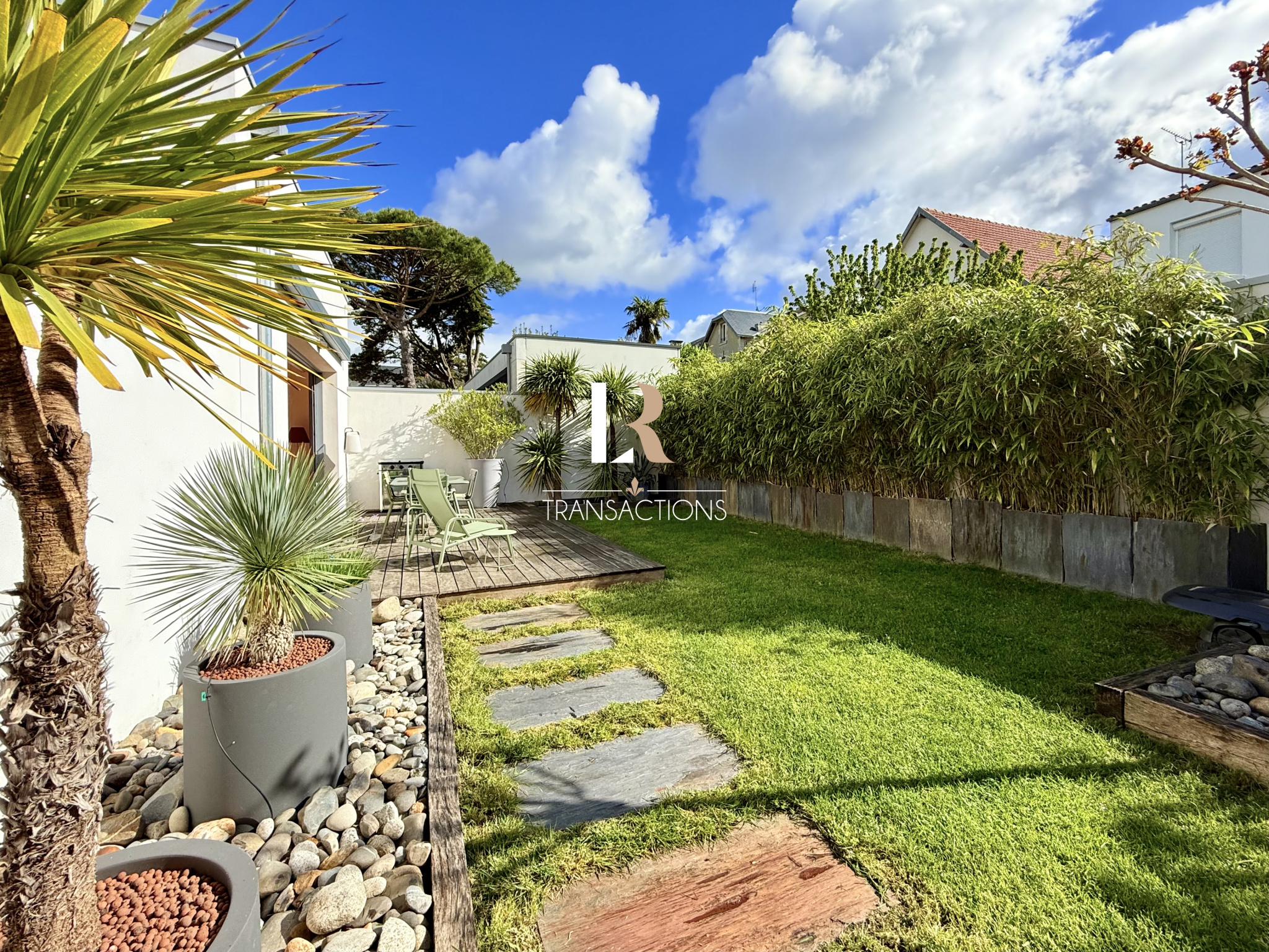 Côté extérieur, le jardin paysagé, exposé Sud-Est, vous permettra de profiter des belles journées d'été. Il est piscinable si tel est votre envie.