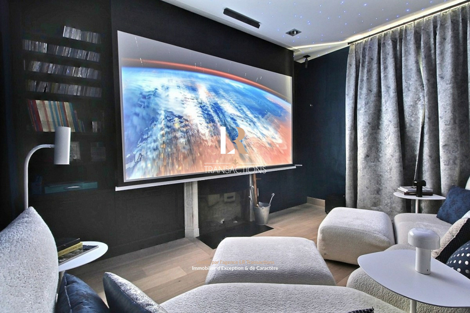 L’espace de vie est intelligemment pensé, un premier salon avec cette spectaculaire cheminée centrale, la magnifique cuisine avec espace repas, le tout bénéficiant d’une généreuse luminosité traversante. Pour compléter cette espace de vie, les propriétaires ont souhaité créer une pièce plus intime, chaleureuse, parfaite pour se détendre au près d’un feu de cheminée avec un bon livre ou devant un grand film car elle est équipée comme une vraie salle de cinéma.